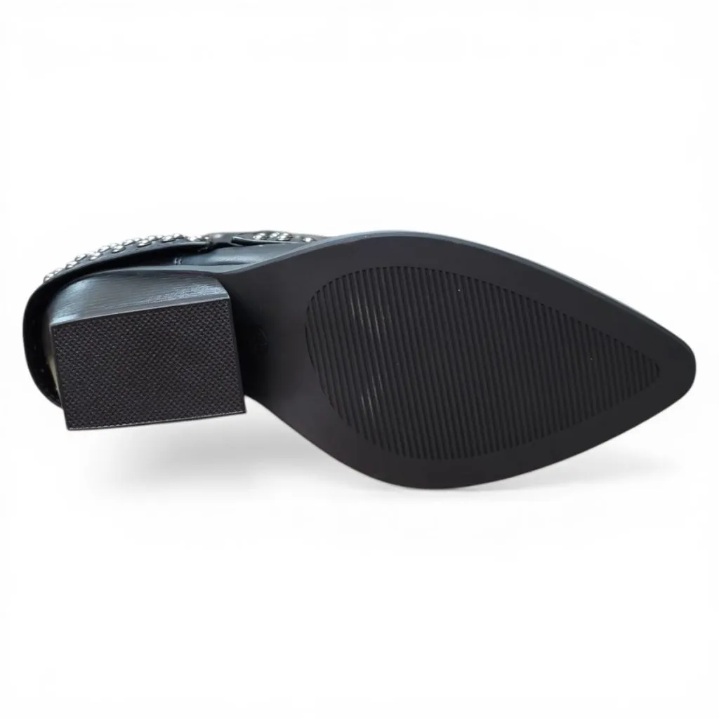 Polera Negra Manga Larga con Estampado Frontal y Aplicaciones Ldp