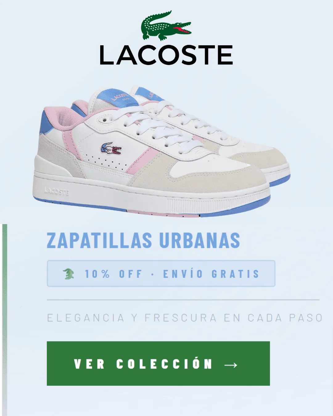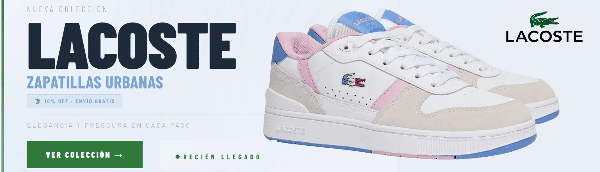 Zapatilla Mujer T-Clip Set Blanca Rosa Celeste Lacoste