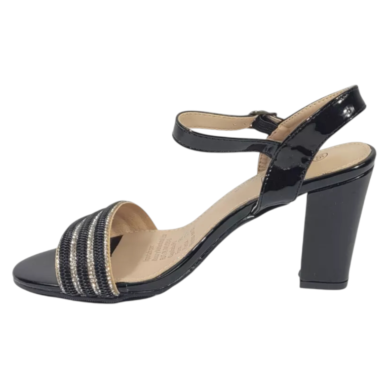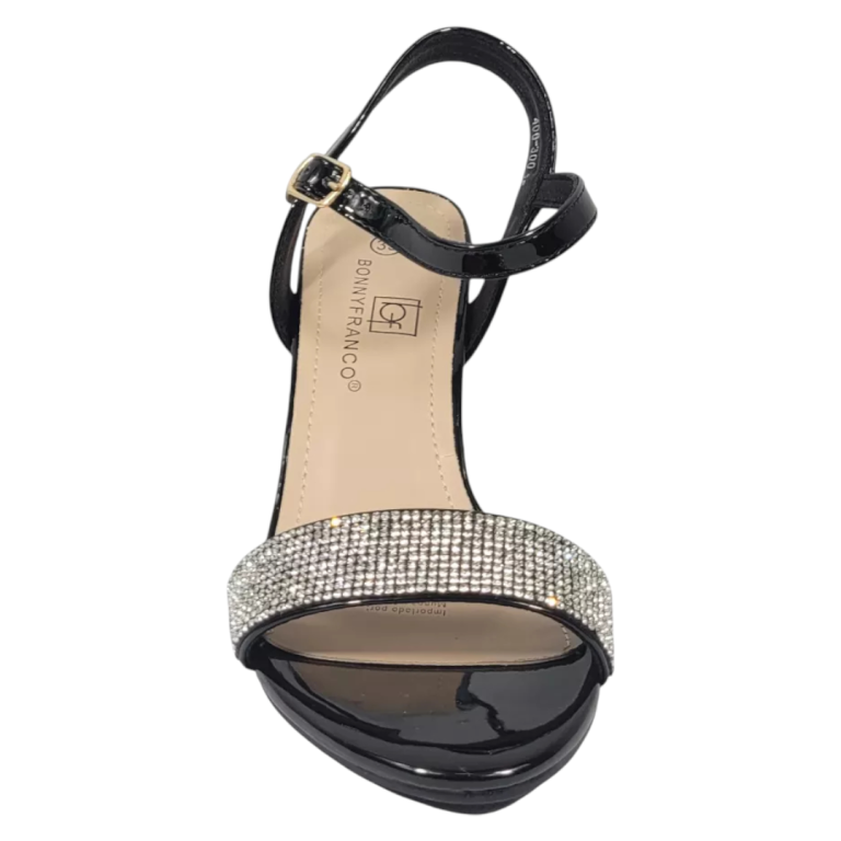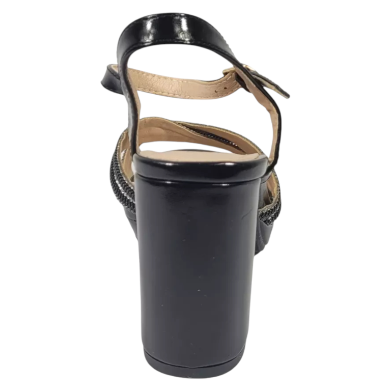 Sandalia Mujer Taco Alto Negra Brillosa Bonnyfranco