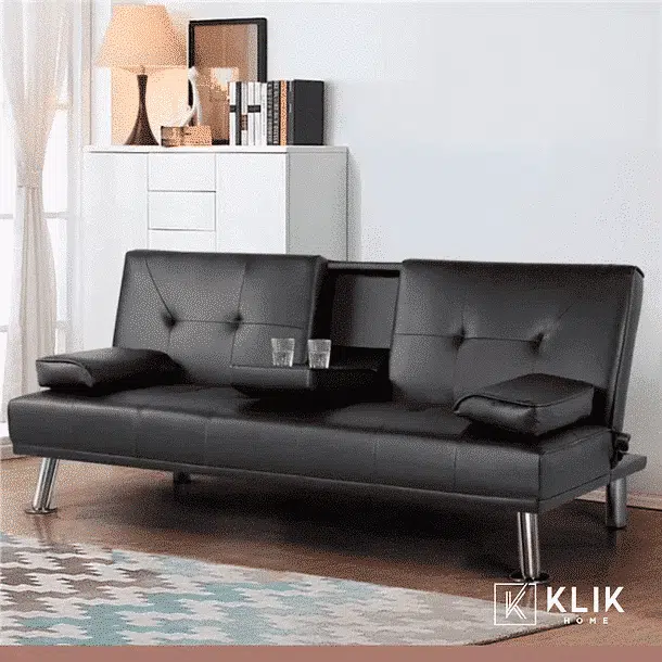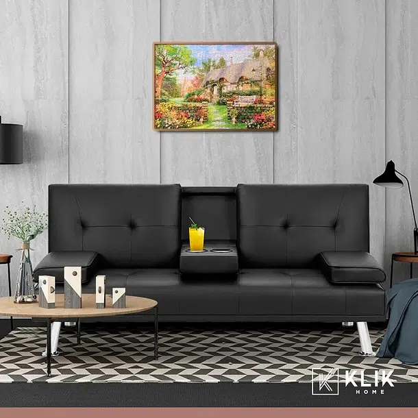 FUTON SOFA CAMA 3 C SARA ECOCUERO NEGRO KLIK