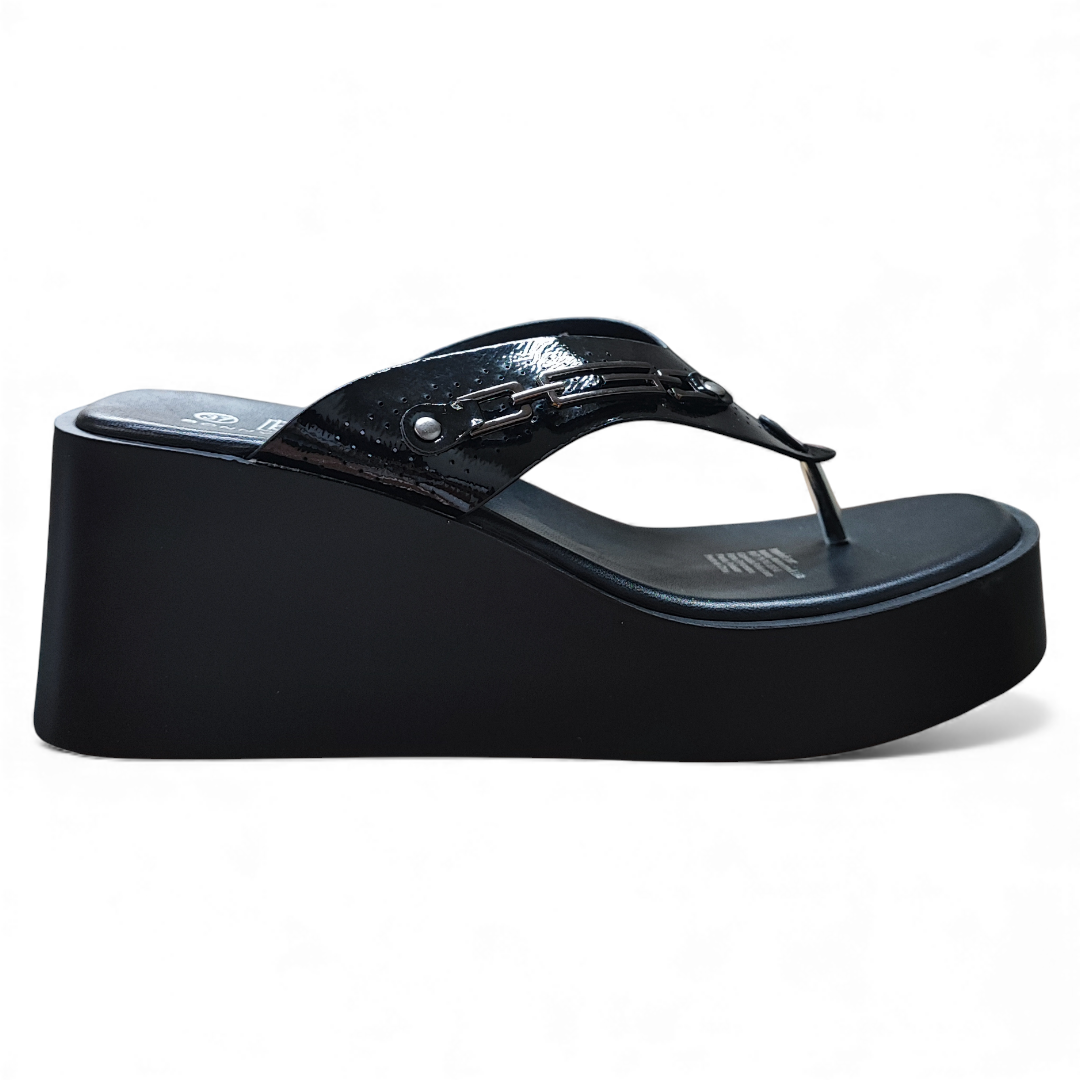 Sandalia Mujer Plataforma Negra Charol New Walk