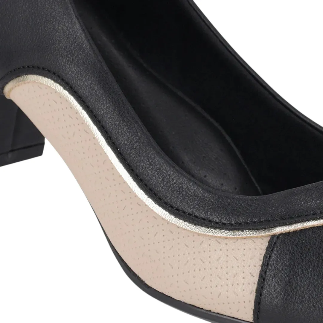 Zapato Mujer Taco Medio Negro Beige Elegante Piccadilly