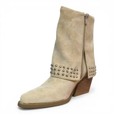 Botin Mujer Brown Microfibra Perforada Taco Medio Poeme