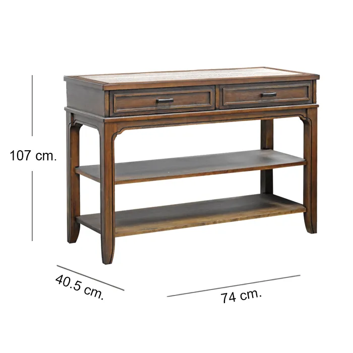 La Arrimo Arlington, Con un elegante tablero laminado de alta presión con aspecto de travertino. Este arrimo no solo ofrece una superficie elegante, sino que también ofrece durabilidad y facilidad de mantenimiento .Aporta elegancia y funcionalidad a tus espacios con este arrimo de diseño clásico. Fabricado en madera sólida con acabado en tono cálido, destaca por su cubierta tipo mármol natural, que añade sofisticación y durabilidad. Incluye un prácticos cajones para almacenamiento discreto y dos repisas inferior ideal para libros o decoraciones. Perfecto para salas o rincones especiales, esta pieza combina estilo atemporal con utilidad. Ideal para ambientaciones clásicas, espacios acogedores y decoraciones refinadas.