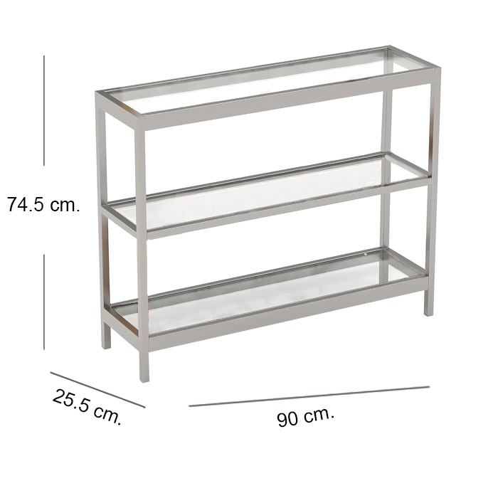 El Arrimo Silver Drag cuenta con una estructura estable y sin tambaleo construida con tubos de hierro. Espacio de almacenamiento maximizado: esta mesa de entrada de 3 niveles añade una sensación de elegancia ordenada a su espacio de vida contemporáneo. Proporcionando un amplio espacio de almacenamiento para libros, ramos, adornos, fotos y mucho más. Esta pieza discreta y versátil está llena de intriga moderna y elegante. Este arrimo cristal se puede colocar casualmente en la entrada, sala de estar, dormitorio, pasillo o estudio de acuerdo a tus necesidades. Sofisticación minimalista moderna: la mesa de consola abierta de 3 niveles utiliza vidrio templado transparente para una limpieza cómoda. Perfecto para apilar libros de mesa auxiliar, mostrar fotos enmarcadas o artículos de decoración más grandes.
