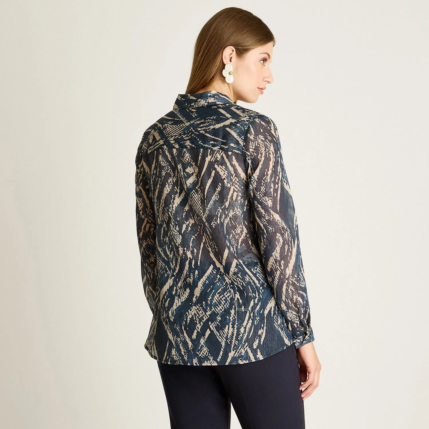 Blusa Camisera Azul Estampada con Lurex Ldp
