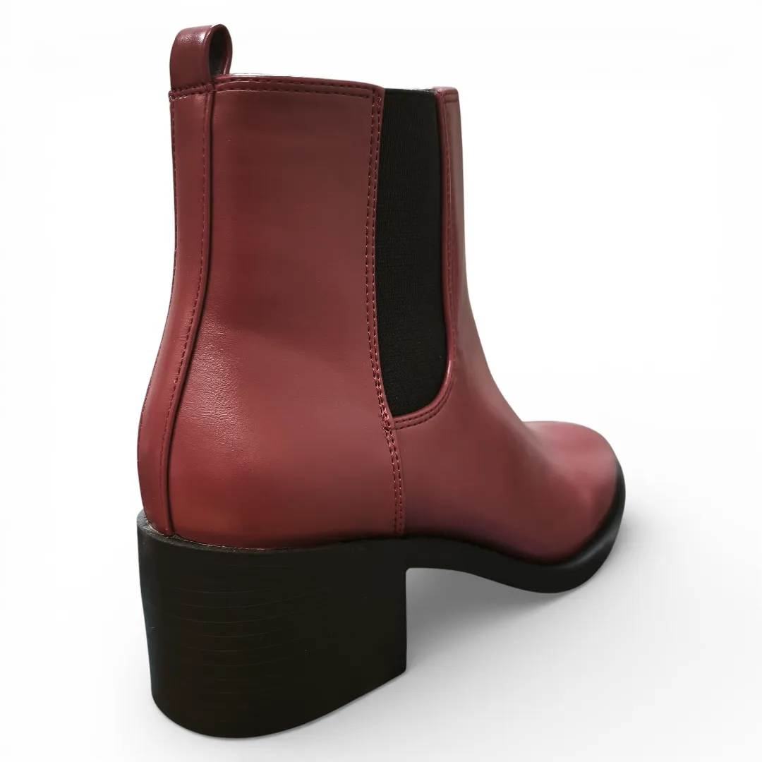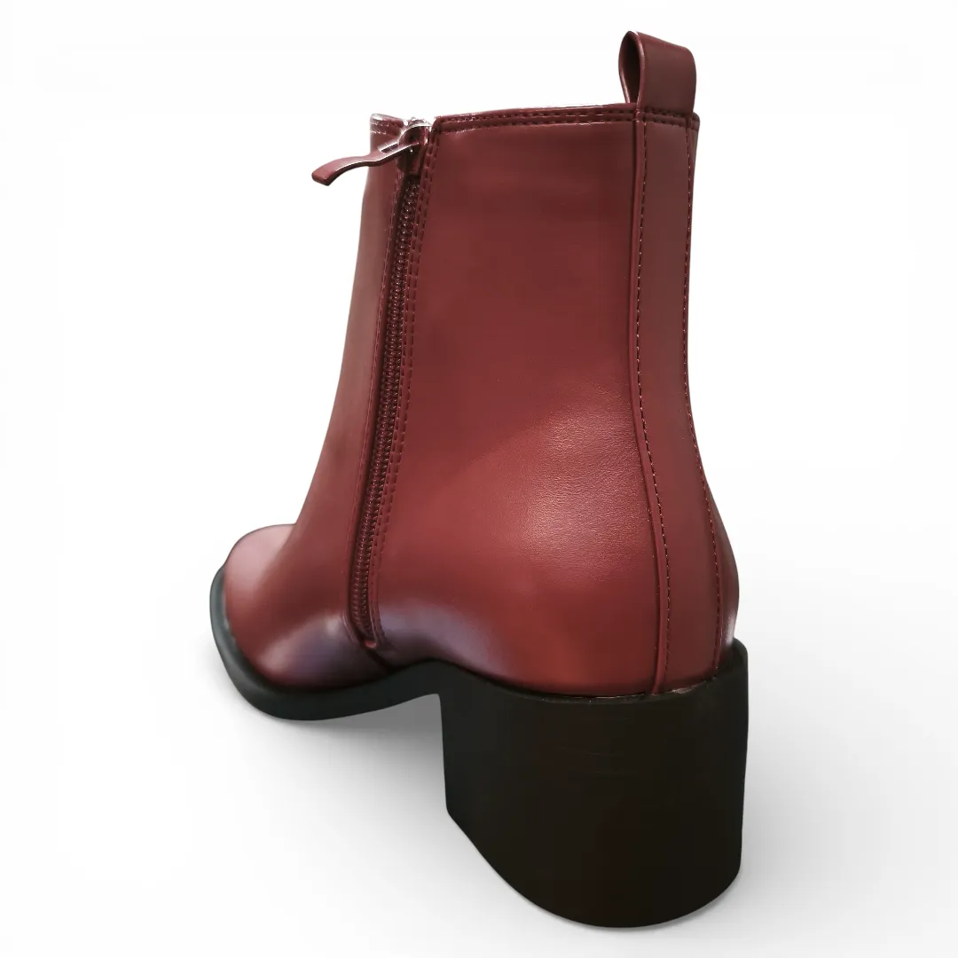 Botín femenino Bonny Franco en tono burdeo, un color sofisticado y versátil que eleva cualquier look de temporada. Su diseño limpio y estilizado permite combinarlo fácilmente con jeans, pantalones de vestir o faldas.