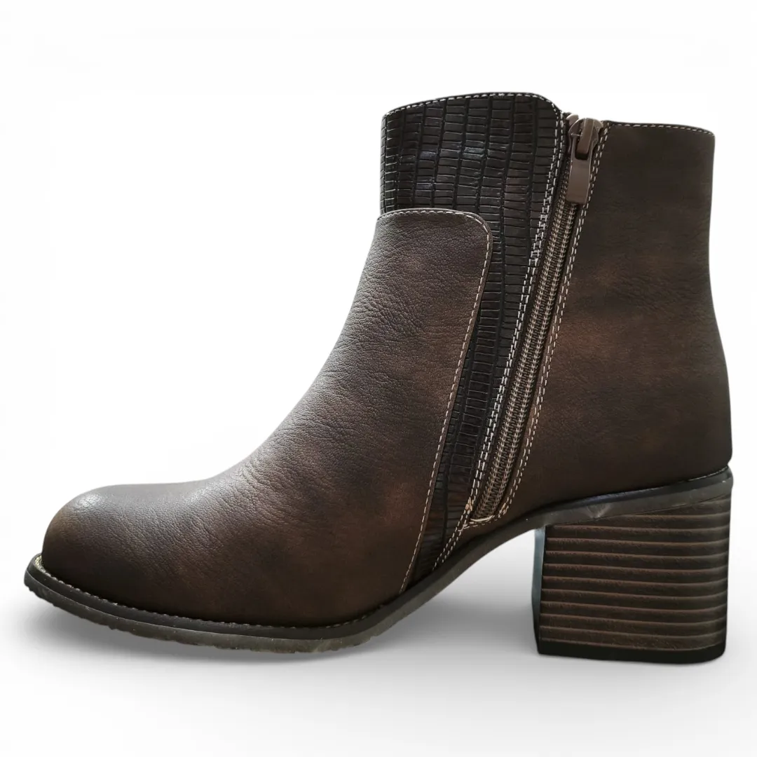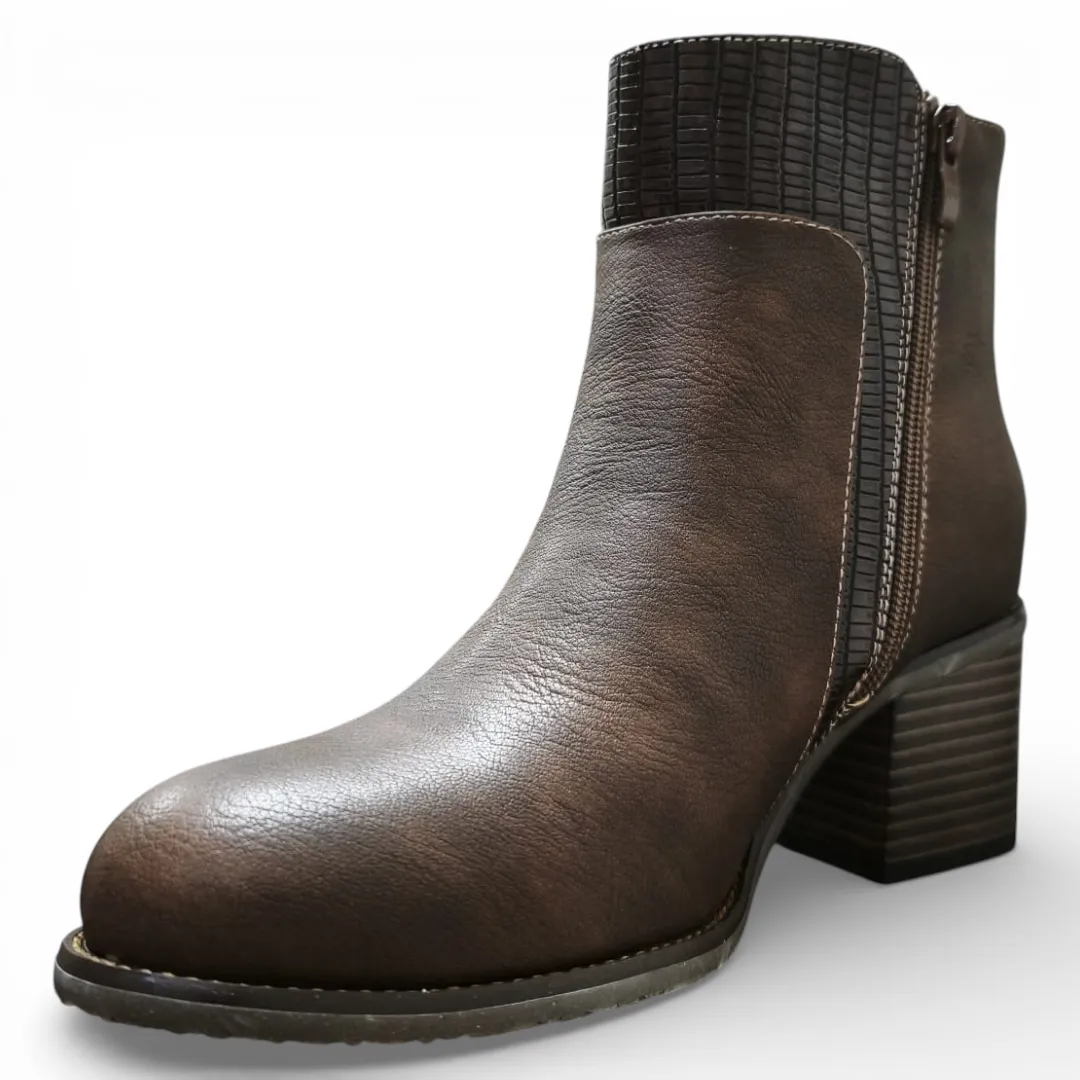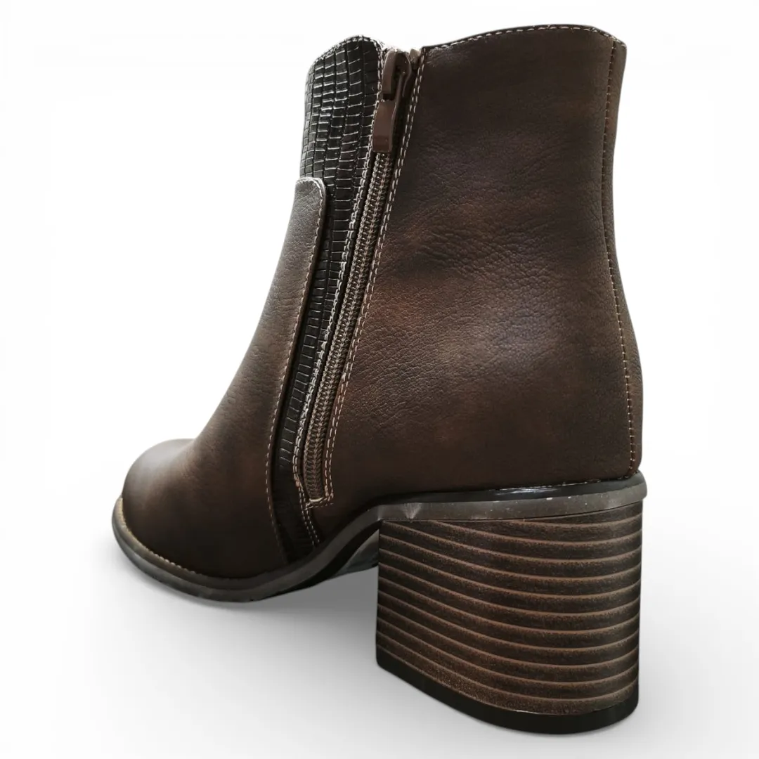 Botín Mujer Café Taco Medio Textura Lateral Bonny Franco