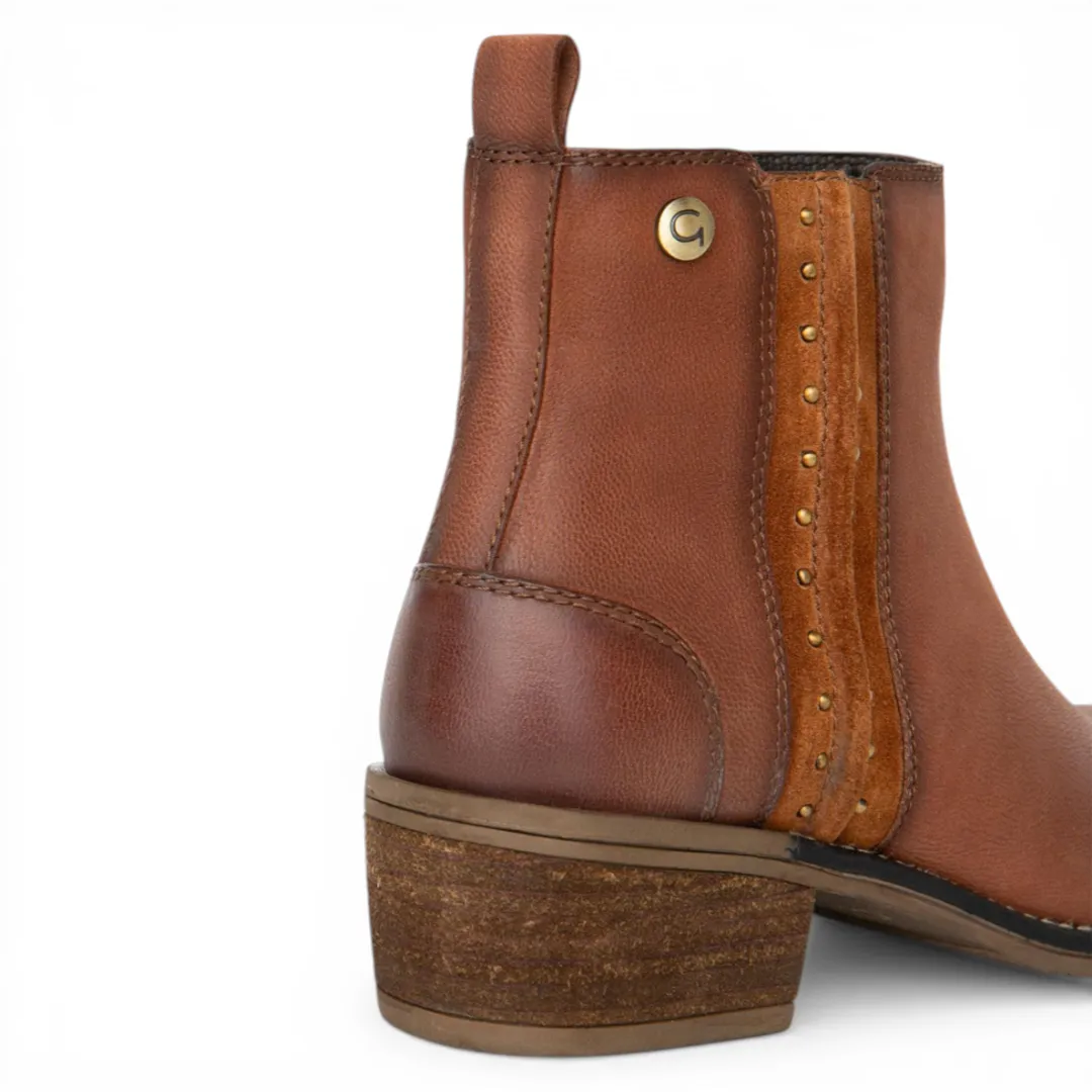 Una conexión genuina con lo natural se siente en cada detalle de este acabado que celebra la imperfección artesanal. Acompaña tus días con la fluidez necesaria para moverte entre lo rústico y lo sofisticado con total ligereza. Cambias todo, menos tu valentía con un botín de la tendencia Nómada en tono tostado envejecido y taco medio, hecho para mujeres auténticas.