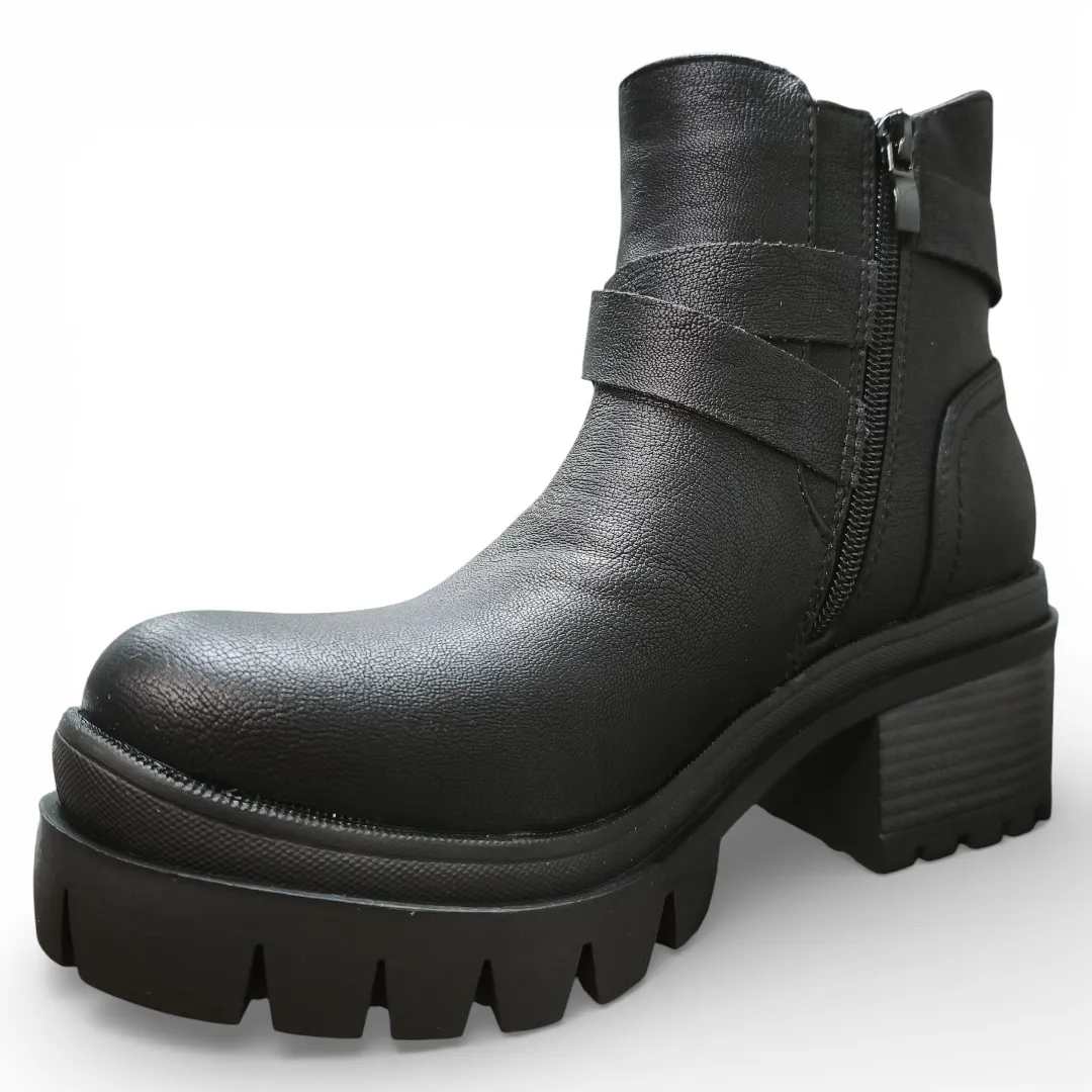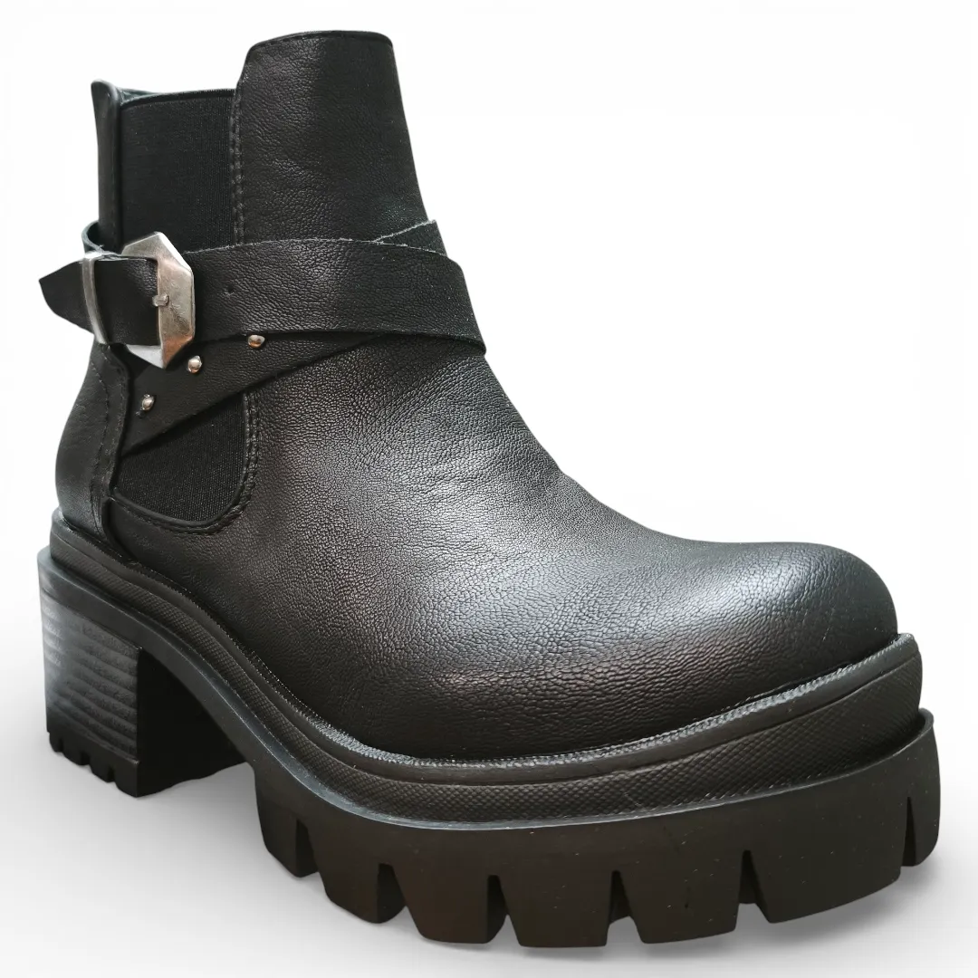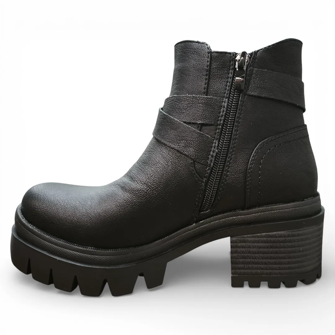 Botín Mujer Rebel Buckle Chunky Negro Bonny Franco