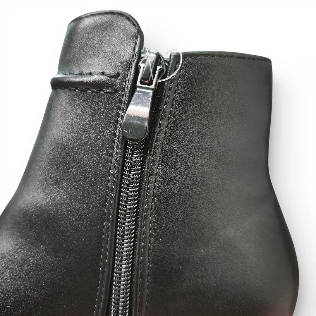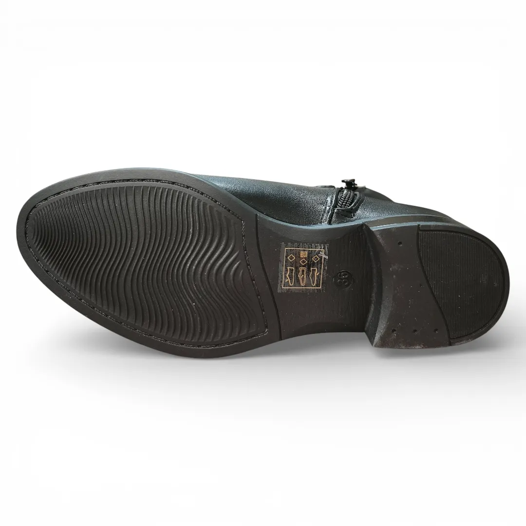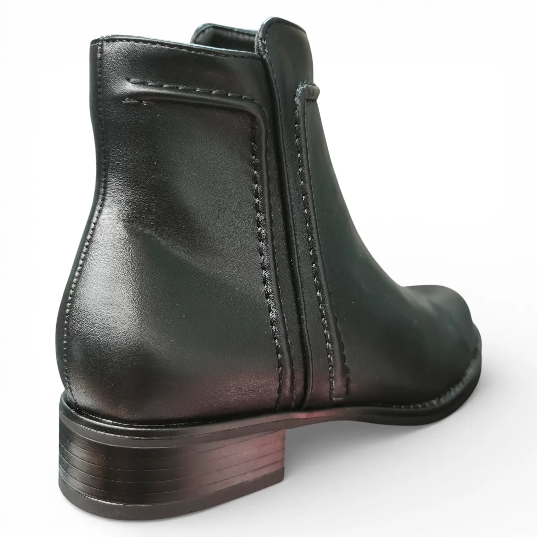 Incorpora cierre lateral que facilita el calce y un taco bajo firme que entrega estabilidad y comodidad durante el día. Su diseño limpio y sofisticado lo convierte en una excelente opción para oficina o uso diario con estilo.