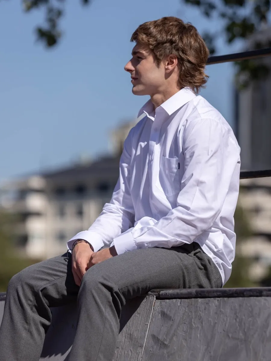Camisa escolar clásica confeccionada en una mezcla de 65% poliéster y 35% algodón, combinando resistencia, suavidad y fácil mantenimiento. Su diseño estructurado mantiene una apariencia prolija y duradera durante todo el día.