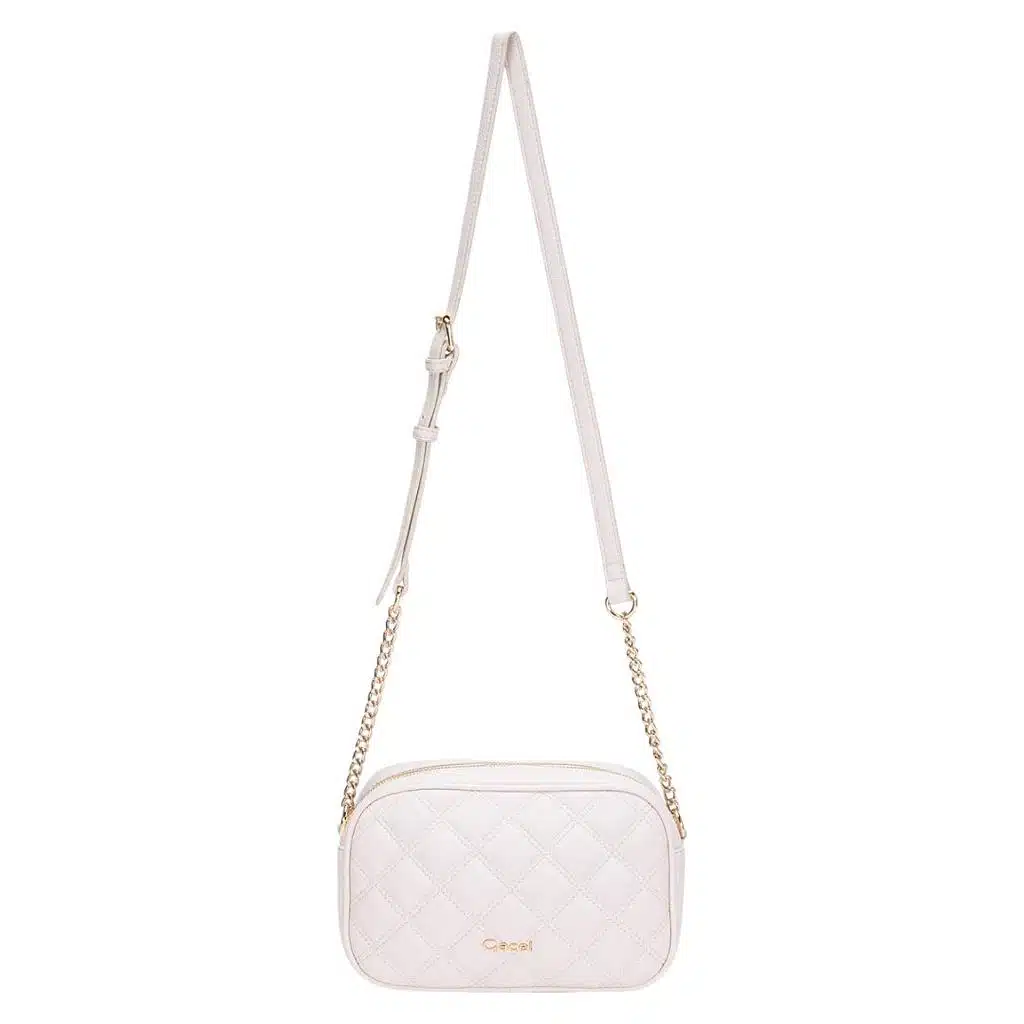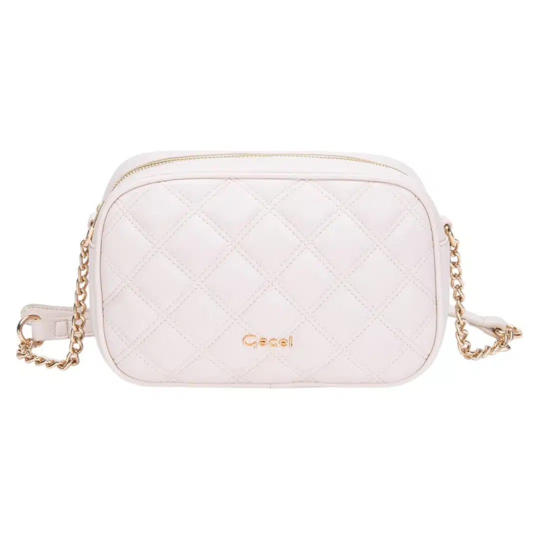 Cartera Bandolera Gacel grande en color off white combina funcionalidad y moda con estilo único. Su diseño incluye un cierre práctico, asa ajustable con cadena dorada y distribución amplia que se adapta a tu día. Inspirada en la confianza y energía de la ciudad, esta pieza es el must-have para quienes buscan destacar.