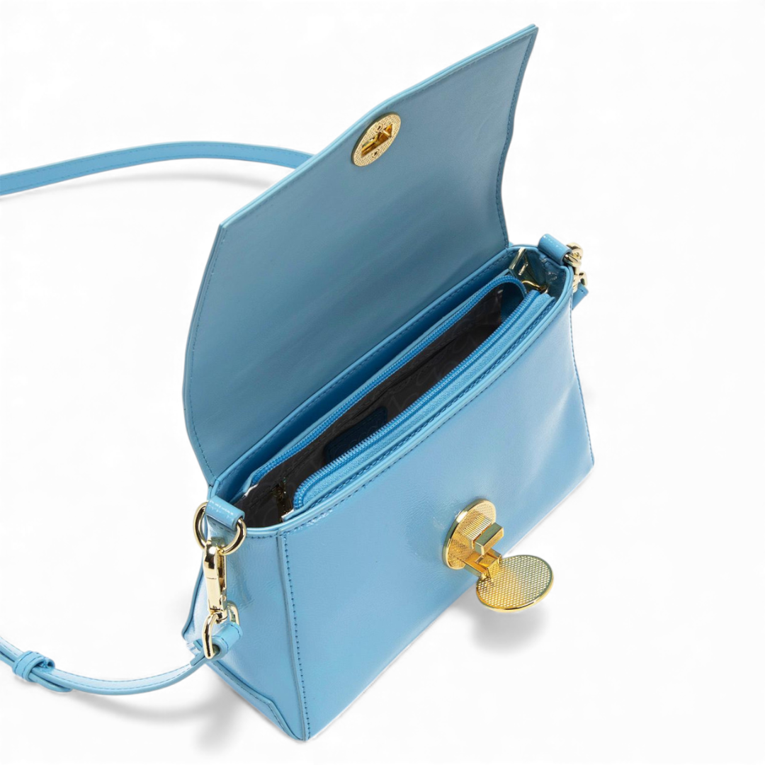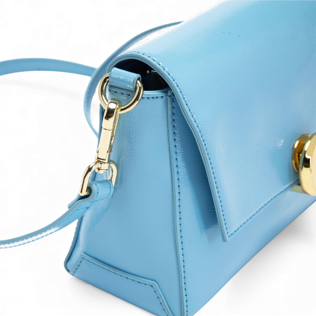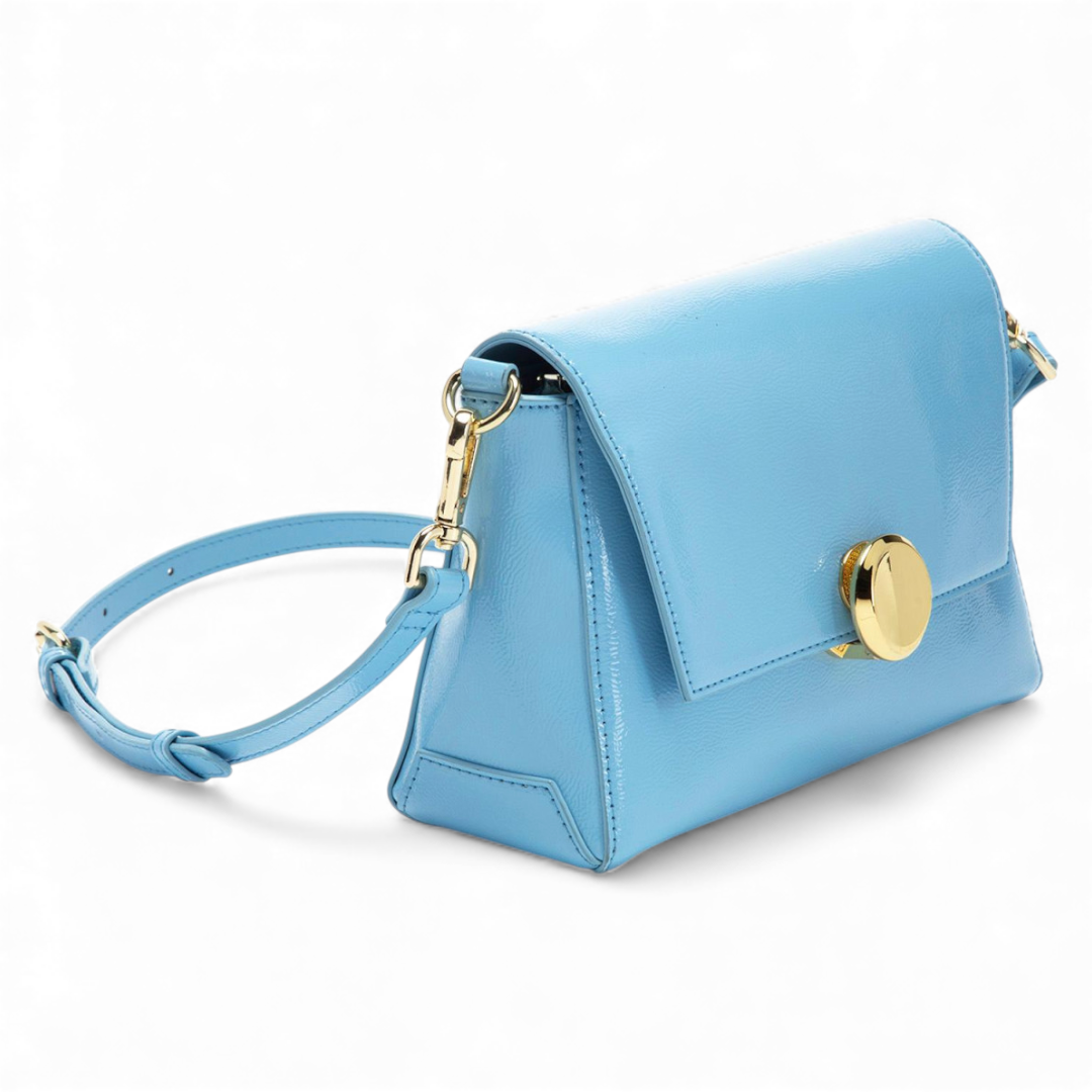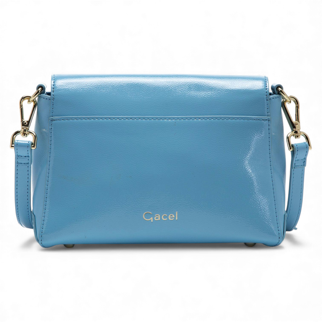 Cartera Bandolera Pequeña Celeste Charol Gacel