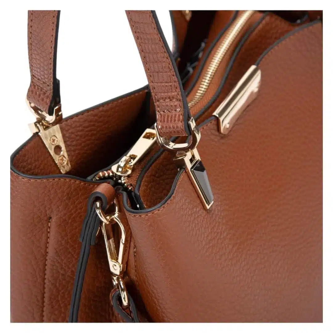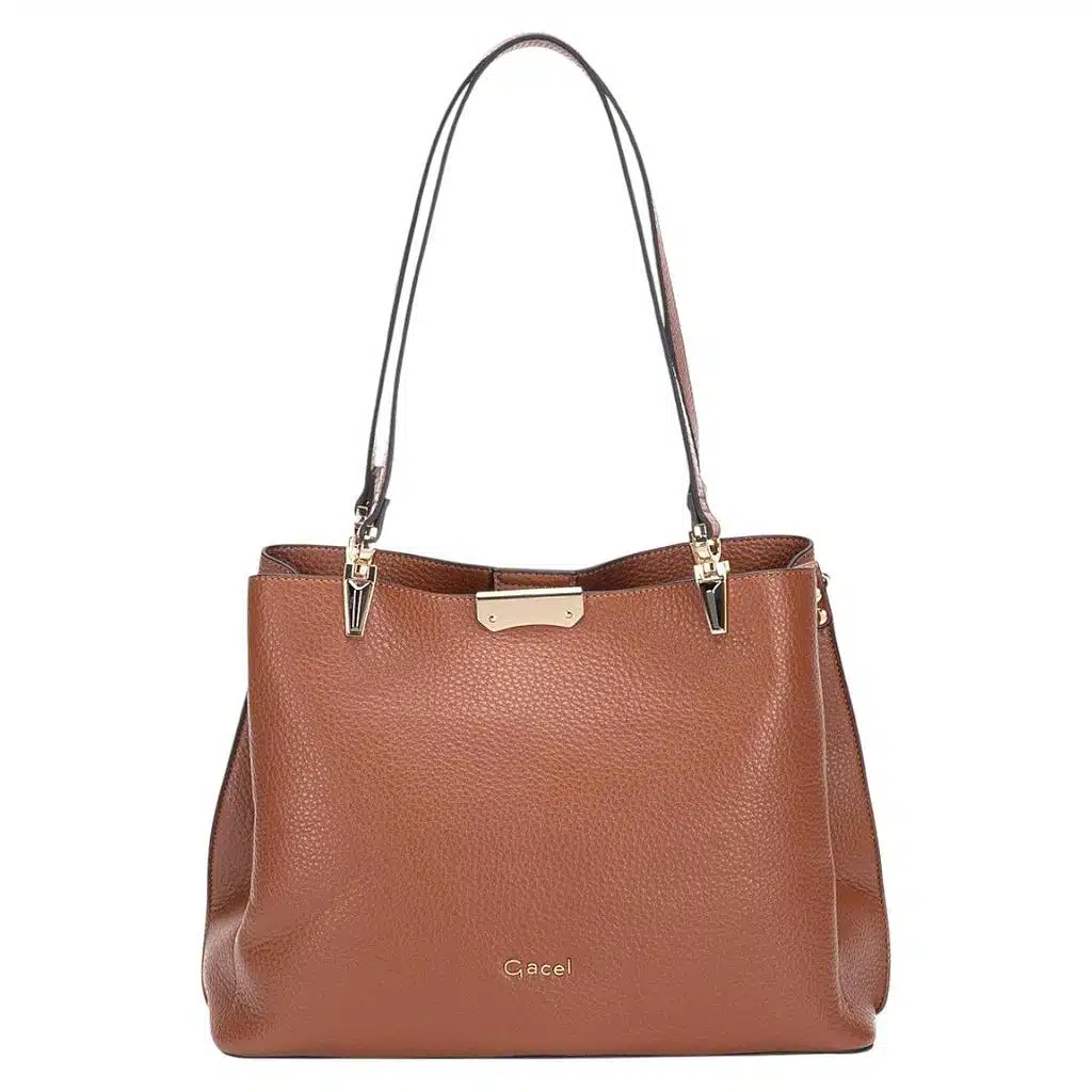 Cartera Gacel dos asas grande en color tostado es el equilibrio perfecto. Confeccionada en material graneado, su diseño versátil con asas cortas y correa larga extraíble se adapta a cualquier ocasión. Su amplia distribución y bolsillos ocultos garantizan organización impecable. Un must have imprescindible dentro de los básicos esenciales para un estilo sofisticado.