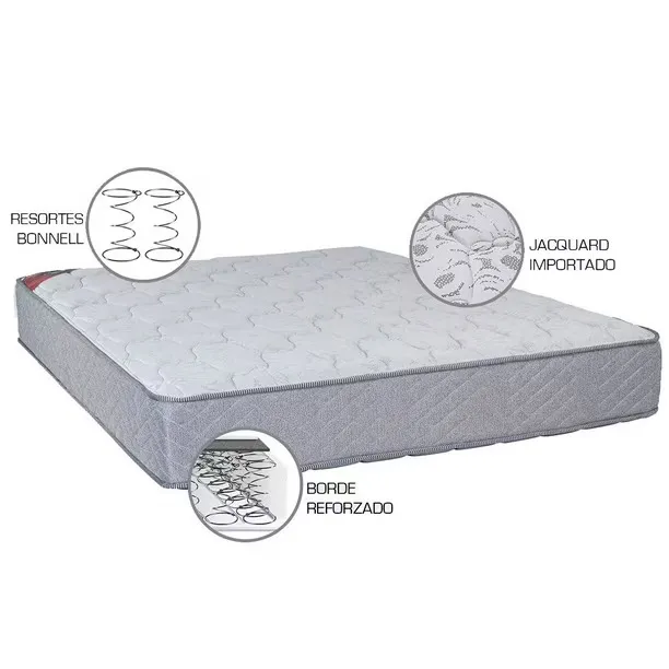 Relleno: Capas de acolchado de espesor intermedio, que permiten sentir la firmeza y comodidad de la estructura de resortes tipo Bonell. Incluye refuerzo perimetral.