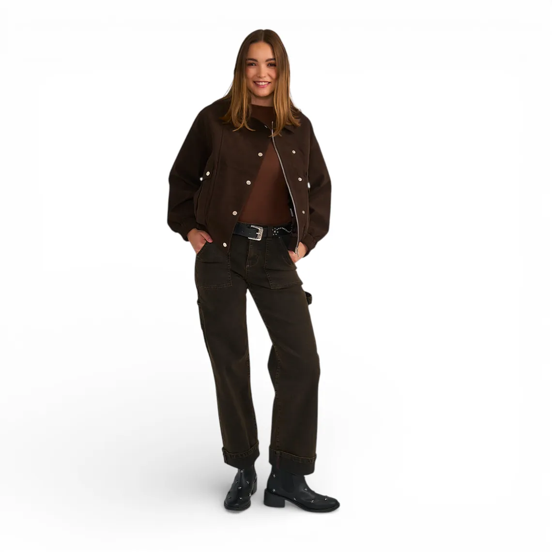 Ideal para outfits casuales con botas, zapatillas o botines, logrando un equilibrio entre comodidad y tendencia.