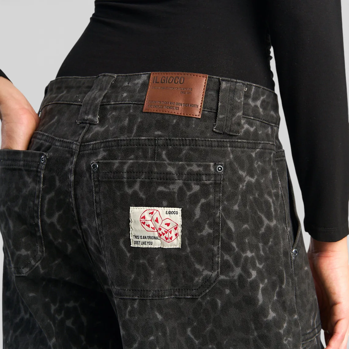 El Jeans Mujer Cargo Street Black Leopard de Il Gioco combina tendencia urbana y actitud moderna en un diseño protagonista.