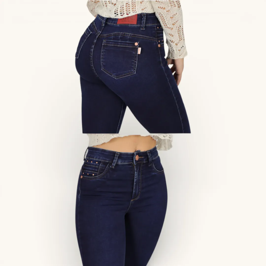 Confeccionado en denim elasticado de excelente calidad, ofrece comodidad y flexibilidad durante todo el día. Su tono azul oscuro aporta un estilo elegante y versátil, ideal para combinar con blusas, poleras o chaquetas, tanto para outfits diarios como para ocasiones más formales.