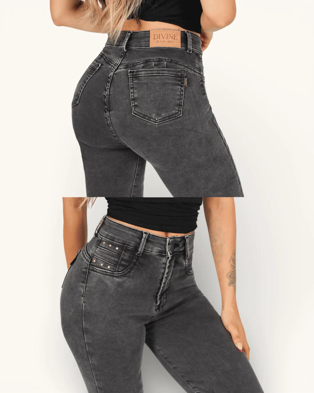 El Jeans Sarah Grey Skinny de Divine está diseñado para realzar la silueta con un ajuste perfecto y moderno. Su calce skinny se adapta al cuerpo desde la cadera hasta el tobillo, estilizando las piernas y marcando la figura con un acabado sofisticado.