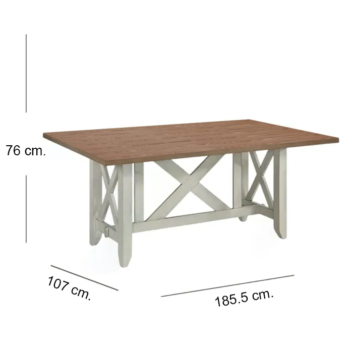 Mesa : Ancho: 185.5 cms. / Profundidad: 107 cms. / Alto: 76 cms.
