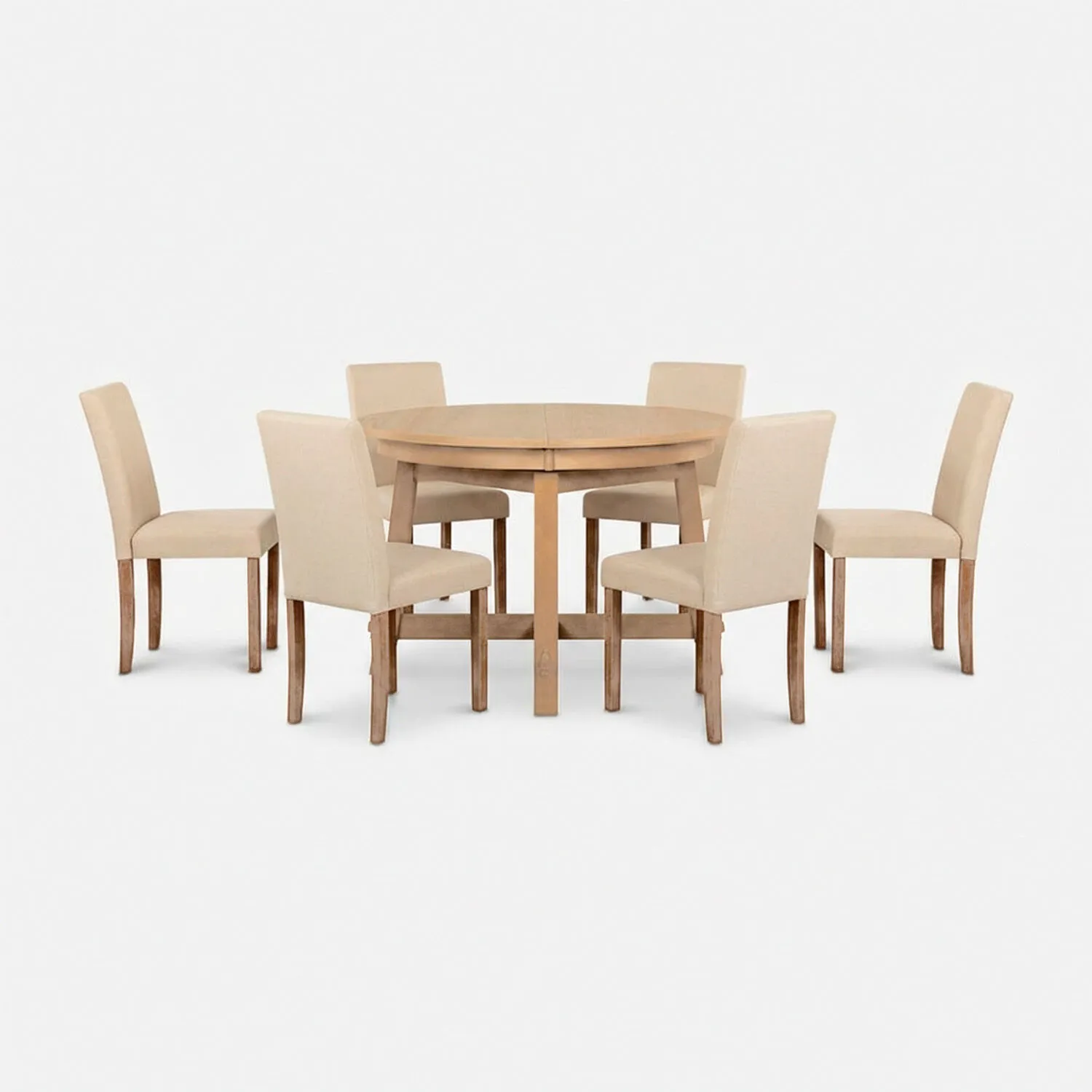 El Comedor 6 Sillas Preston combina materiales nobles con funcionalidad práctica. Su mesa extensible de cubierta enchapada en roble color Walnut permite adaptar el espacio según la ocasión, mientras las sillas tapizadas en poliéster de alta resistencia color beige ofrecen suavidad y confort.