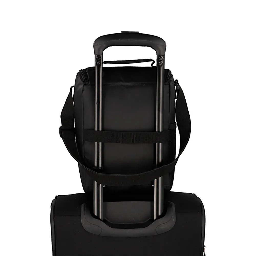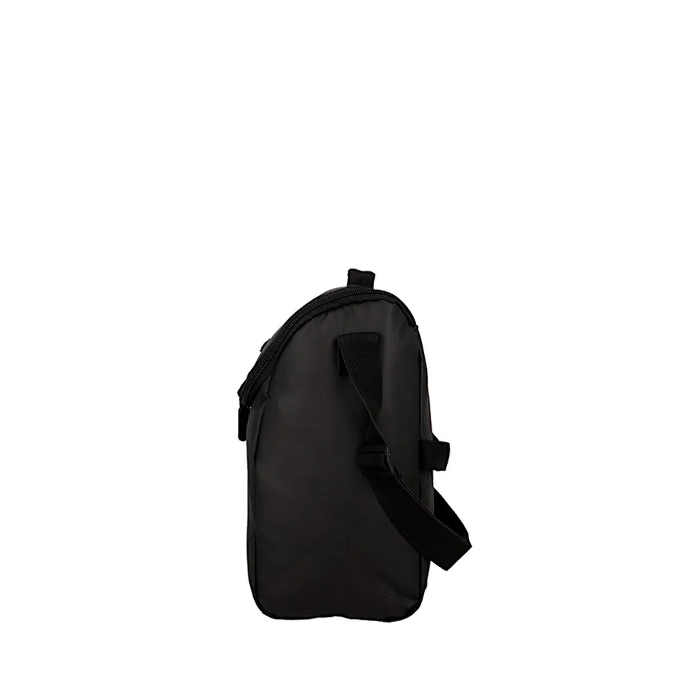 Fabricada en poliéster resistente y repelente al agua, cuenta con correa ajustable y banda para carro, lo que facilita su uso tanto de forma independiente como junto a mochilas con sistema de arrastre. Ideal para niños y jóvenes que necesitan una lonchera funcional, liviana y fácil de limpiar.