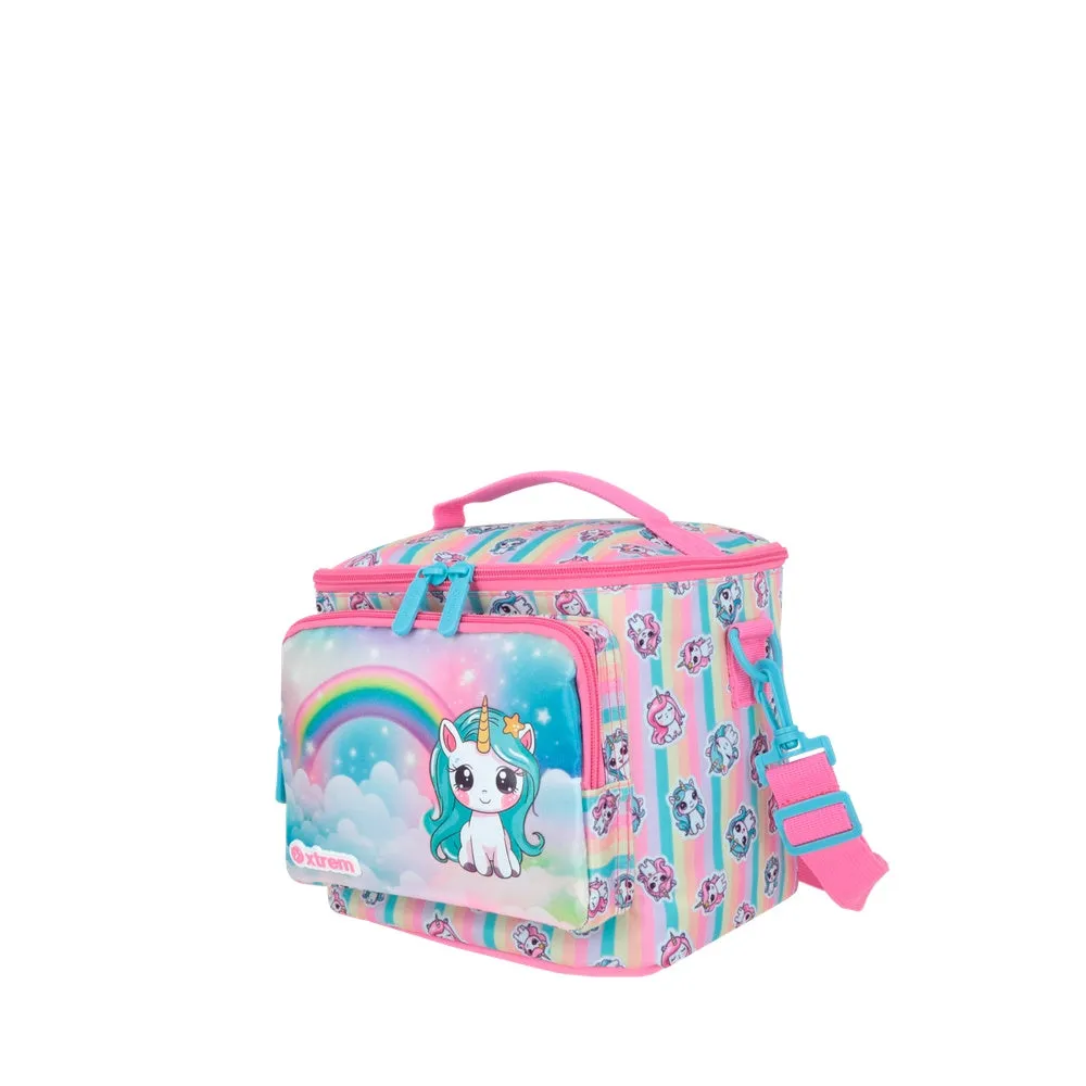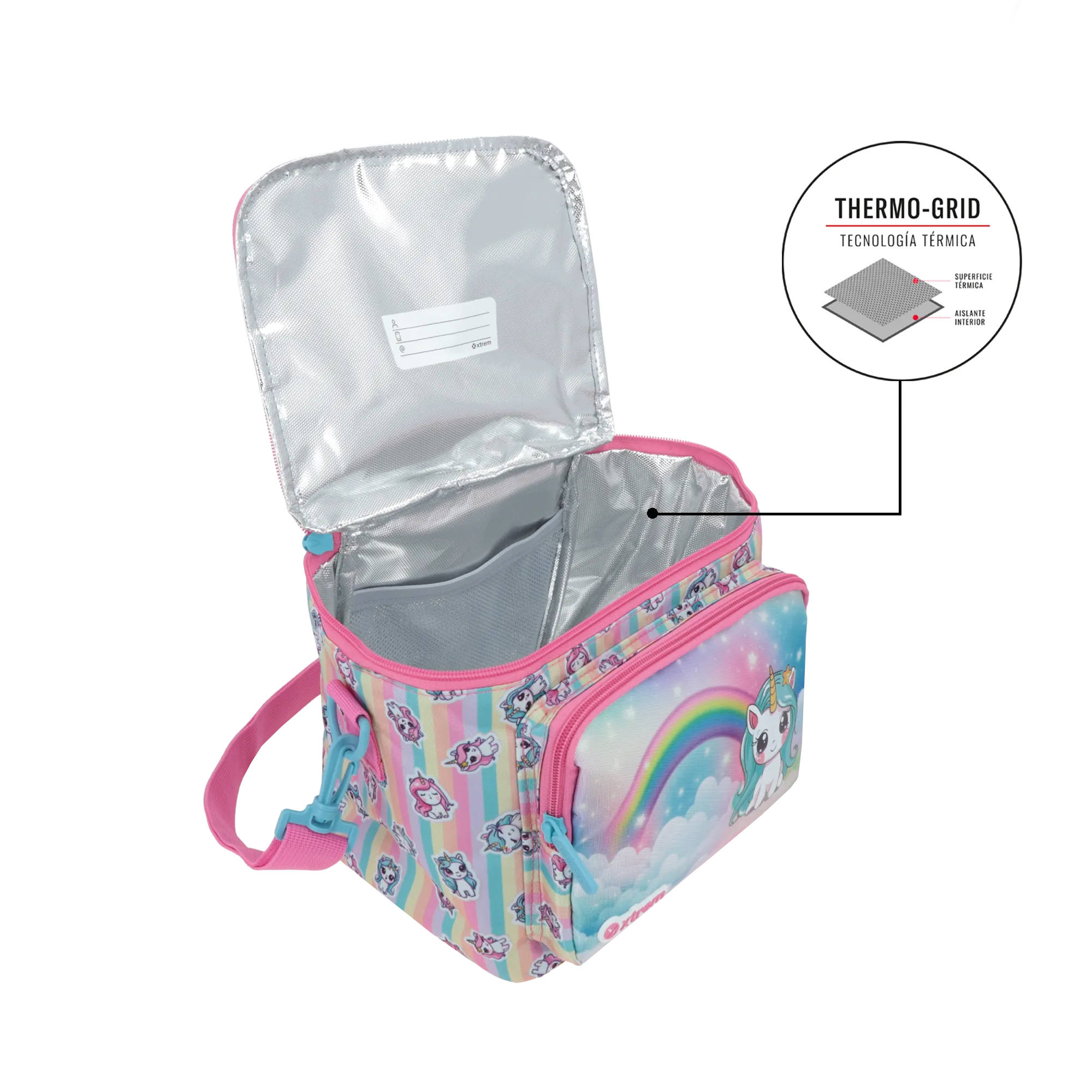 La lonchera Xtrem Multicolor Unicorn es ideal para el uso escolar diario, combinando un diseño colorido y llamativo con materiales resistentes y funcionales. Su interior térmico con tecnología Thermo-Grid ayuda a mantener la temperatura de los alimentos por más tiempo, acompañando la jornada escolar de forma práctica y segura.