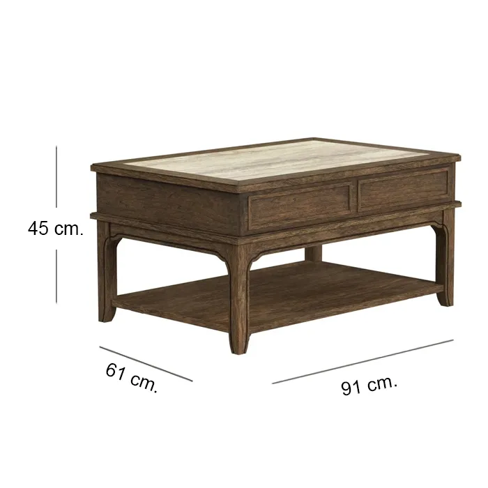 La mesa de centro Arlington es una impresionante pieza central que combina un diseño moderno con una funcionalidad práctica. Con un elegante tablero laminado de alta presión con aspecto de travertino, esta mesa no solo ofrece una superficie elegante para el entretenimiento, sino que también ofrece durabilidad y facilidad de mantenimiento. El estante inferior añade un nivel extra de funcionalidad, perfecto para exhibir artículos decorativos o apilar libros. El rico acabado en madera moca aporta calidez y sofisticación, convirtiéndola en un complemento atractivo para cualquier hogar. Ya sea para recibir invitados o para disfrutar de una velada tranquila, la mesa de centro Arlington realza la comodidad y el estilo de su sala de estar.