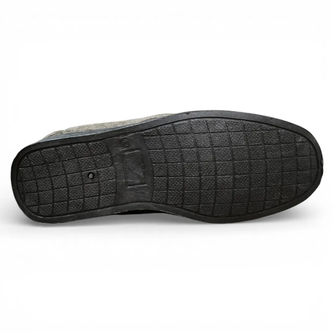 Gracias a su diseño tipo mocasín, permite un calce rápido y cómodo, ideal para usar en casa durante momentos de descanso. Su suela resistente y flexible proporciona estabilidad al caminar en superficies interiores, ofreciendo seguridad y confort en cada paso.
