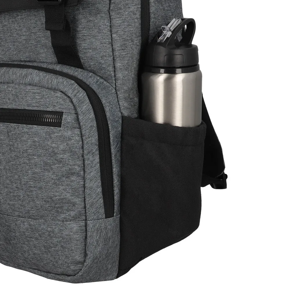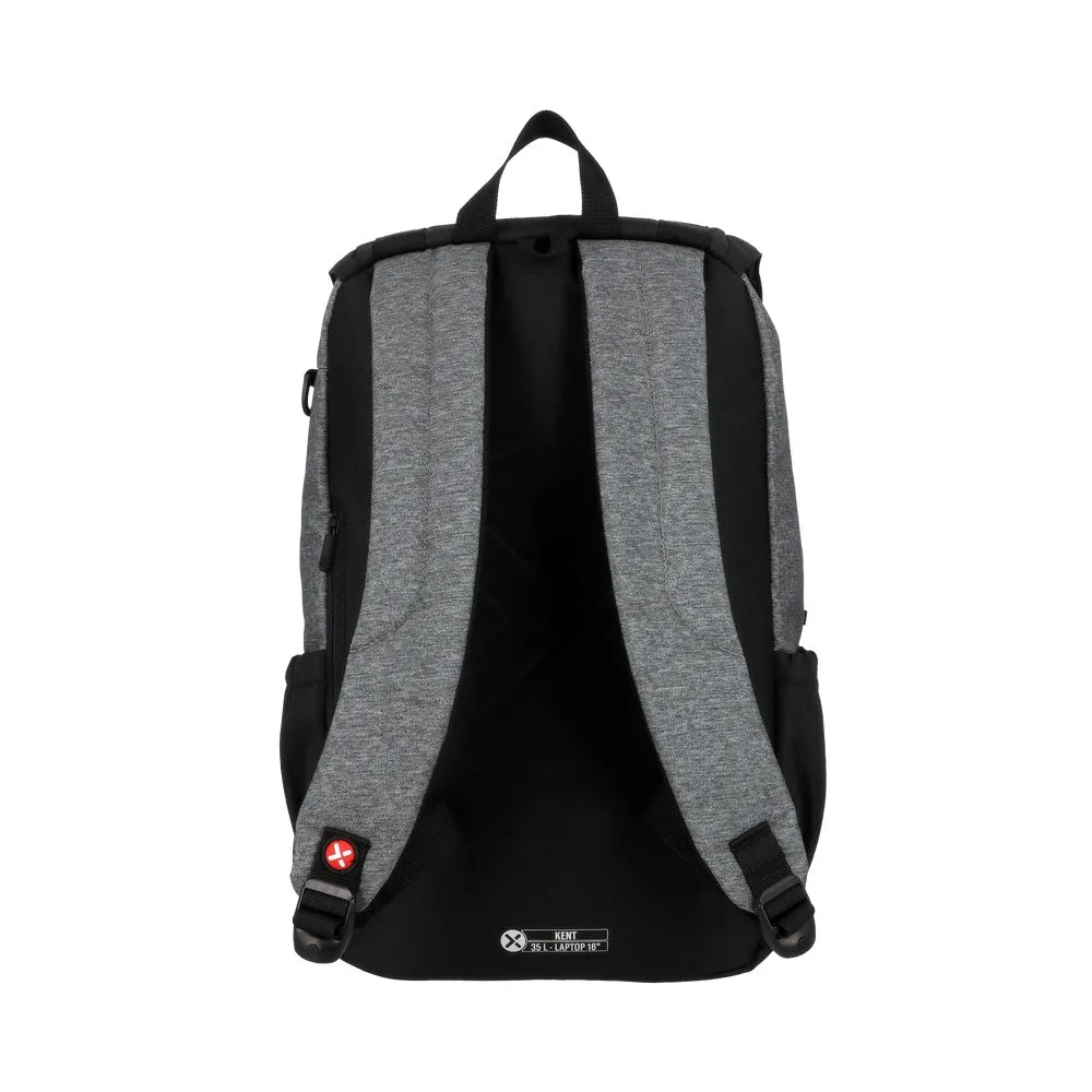 Su estructura amplia de 35 litros incorpora un compartimento acolchado para notebooks de hasta 16 pulgadas, múltiples bolsillos funcionales y un interior con forro fabricado a partir de botellas recicladas, aportando durabilidad y un enfoque más sustentable. El acabado Grey Melange le da un look moderno y versátil para uso diario.