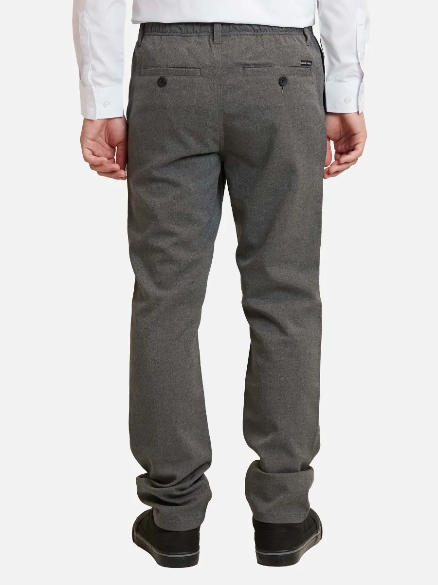 Pantalón escolar confeccionado en una mezcla resistente y cómoda que combina poliéster, viscosa y spandex. Esta composición entrega durabilidad, suavidad al tacto y la elasticidad necesaria para acompañar el movimiento diario.