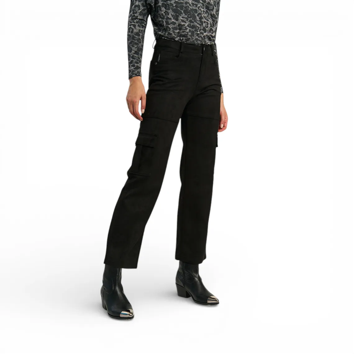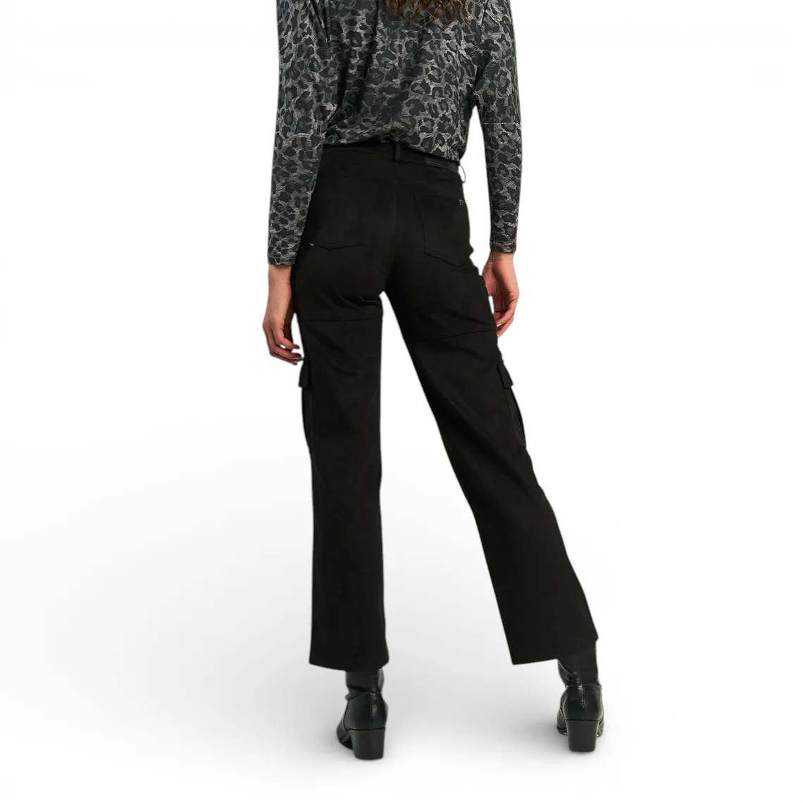 Pantalón Mujer Cargo Recto Negro Suede Ellus