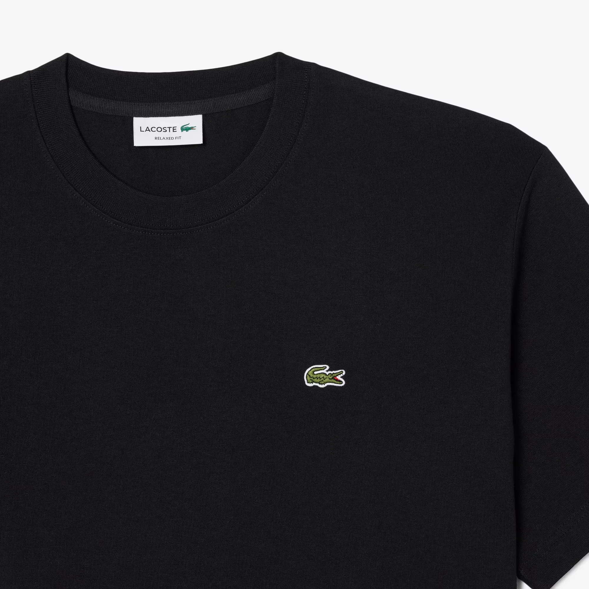 Polera Lacoste de diseño minimalista en color negro, ideal para un estilo moderno y versátil. Su confección en algodón de mayor gramaje entrega una sensación más estructurada y resistente, manteniendo al mismo tiempo la comodidad característica de la marca.