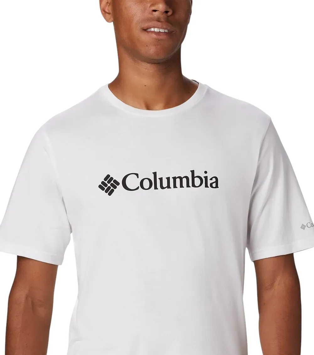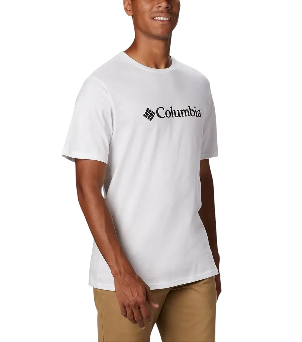 Polera Hombre Basic Logo Blanca Manga Corta Columbia