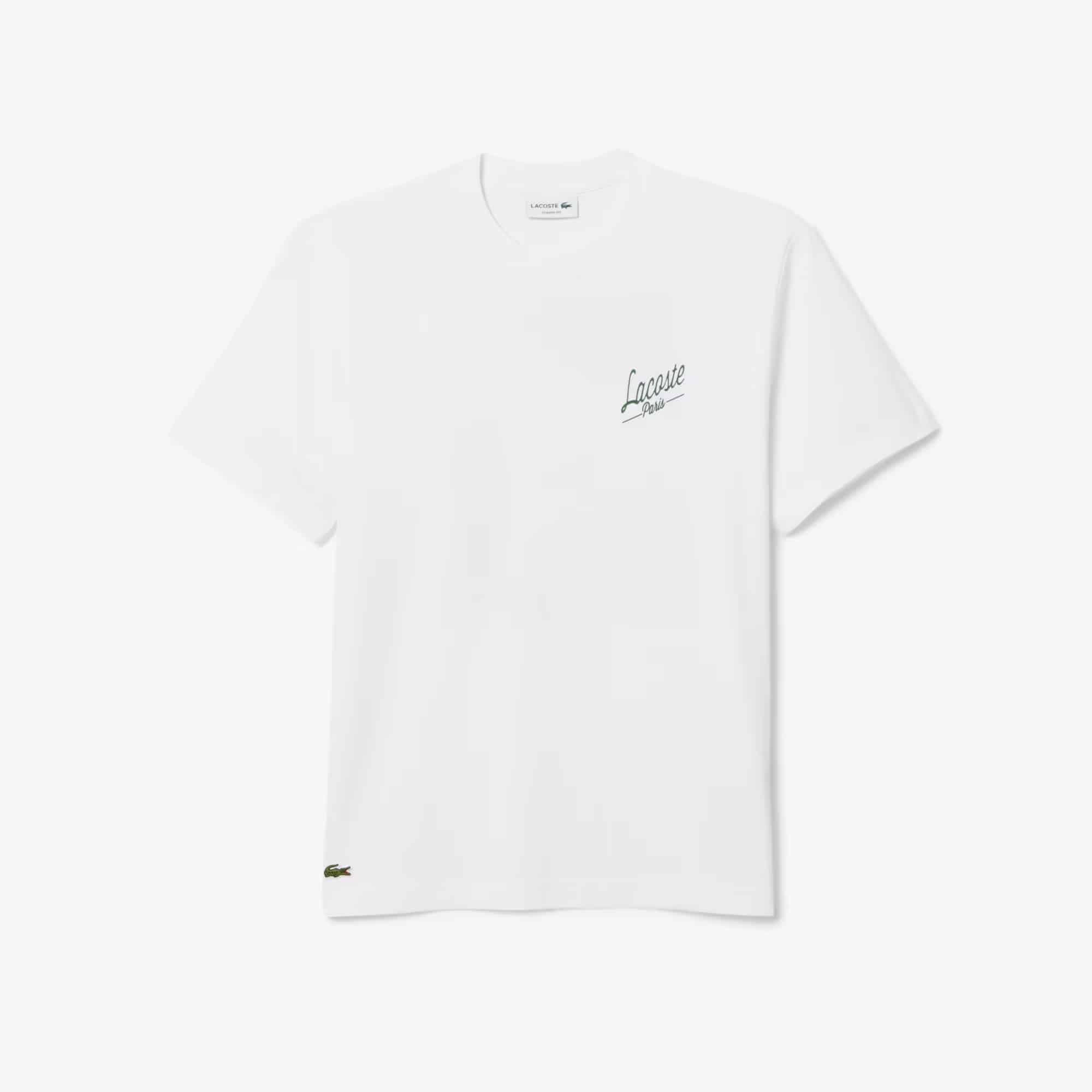 La polera Lacoste Paris blanca es un ícono del estilo deportivo moderno. Confeccionada en punto jersey de algodón suave, ofrece comodidad y frescura durante todo el día. Su diseño Classic Fit con mangas cómodas se complementa con el exclusivo estampado Lacoste Paris en el pecho y un gran gráfico en la parte trasera, aportando un look audaz y urbano.