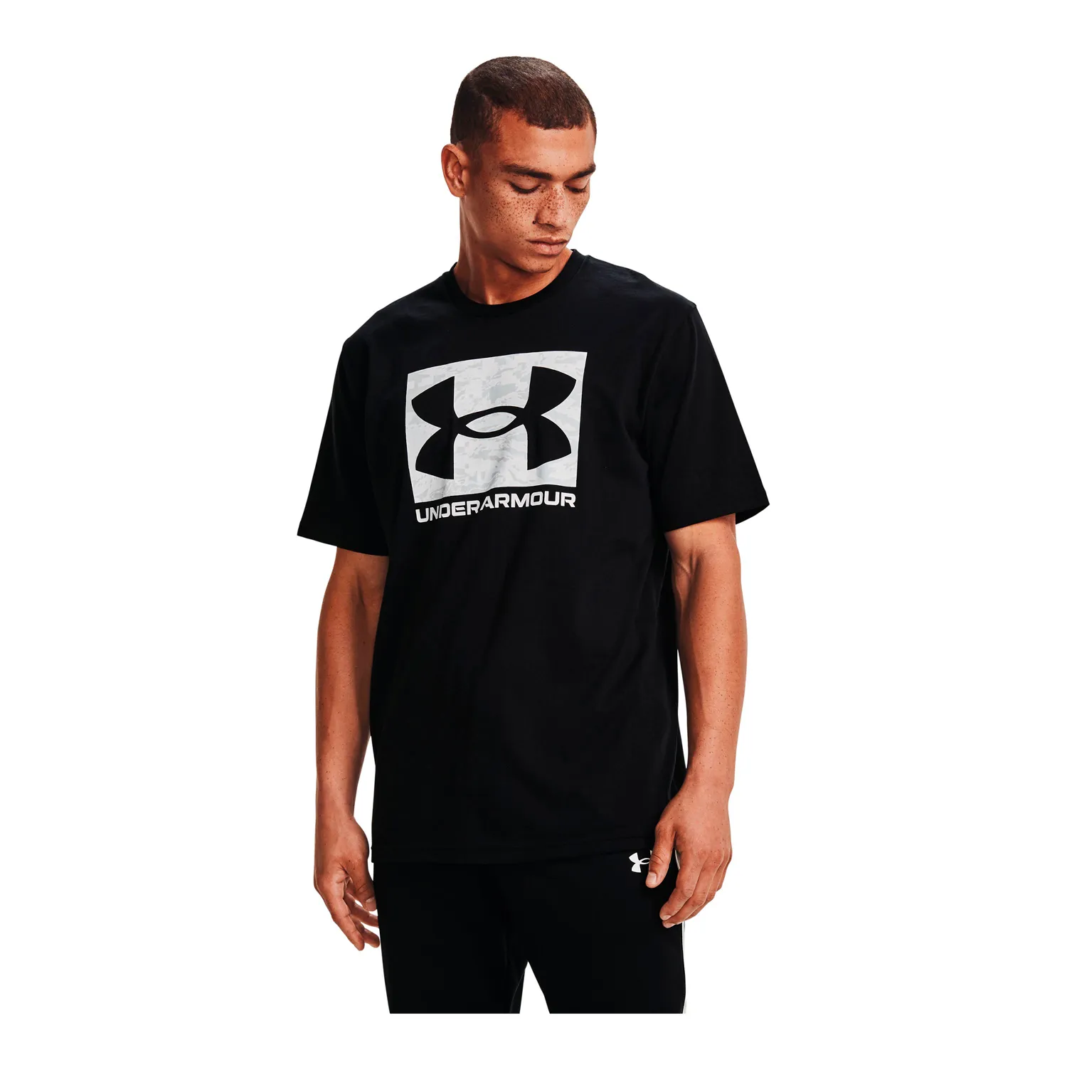 La Polera Manga Corta Under Armour ABC Camo Boxed Logo Negra es una pieza versátil que combina estilo urbano con rendimiento deportivo. Su diseño con logo en camuflaje cuadrado destaca la identidad de la marca, aportando un toque único y contemporáneo a cualquier outfit.