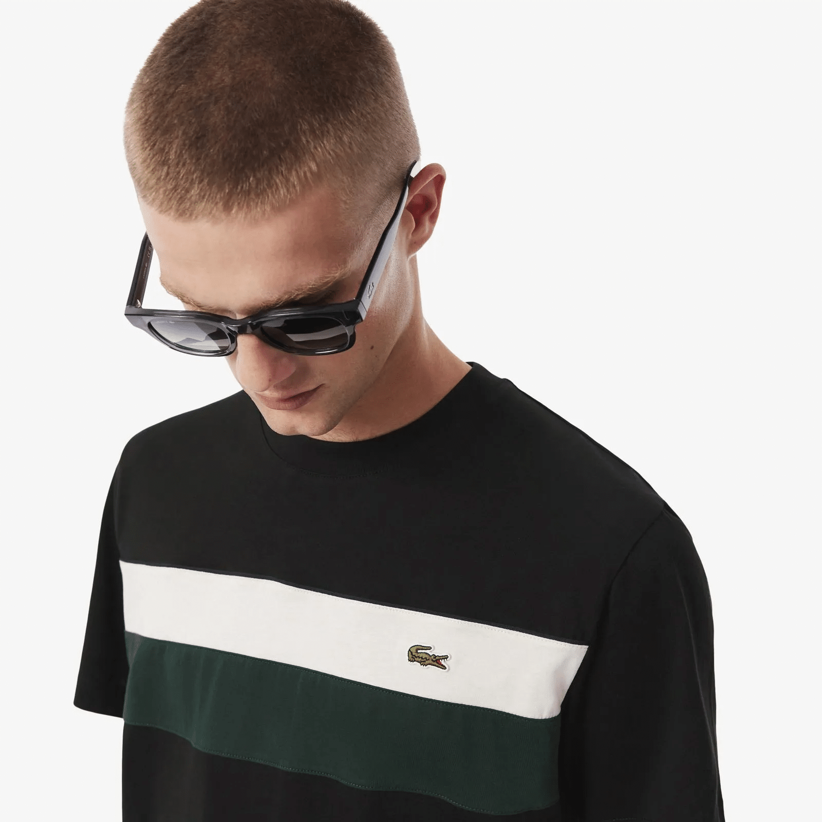 Su corte Classic Fit asegura un ajuste cómodo y relajado, mientras que las franjas en contraste en el pecho aportan un look distintivo y sofisticado. El detalle final lo da el icónico cocodrilo bordado en el lado izquierdo del pecho, símbolo de autenticidad y calidad Lacoste.