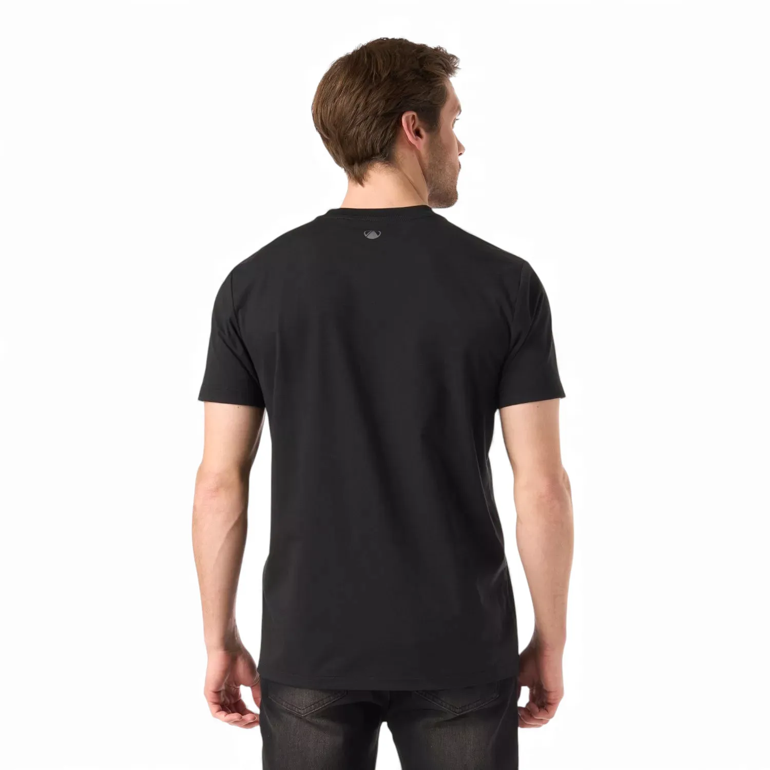 Su corte regular fit, cuello redondo y diseño minimalista con logo frontal la convierten en una opción versátil para actividades outdoor o uso urbano. El color negro aporta un estilo moderno y fácil de combinar, ideal para quienes buscan un look limpio, cómodo y consciente con el medioambiente.