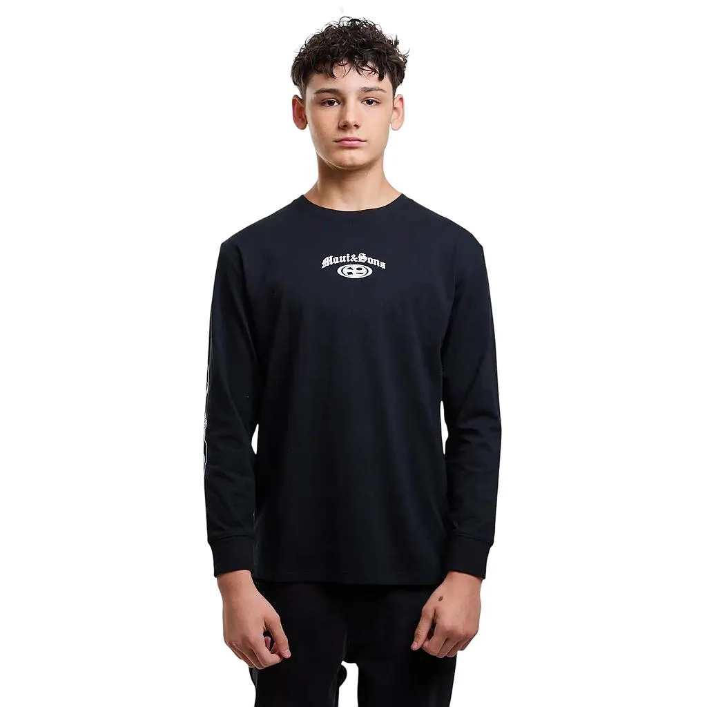Polera Juvenil Manga Larga Print Negro Maui