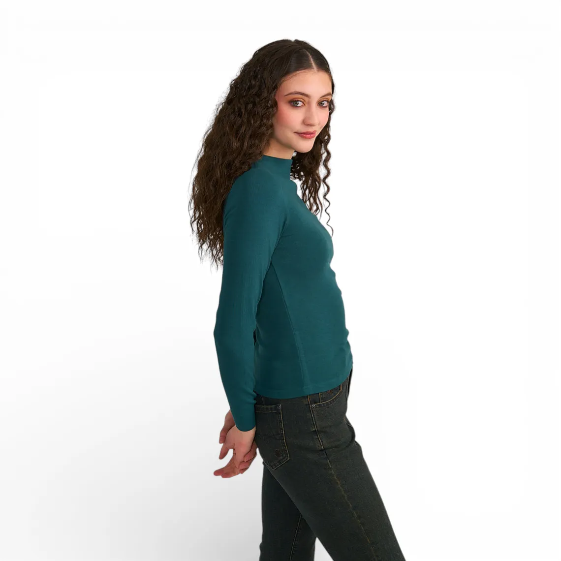 Polera Mujer Manga Larga Cuello Medio Petróleo Il Gioco