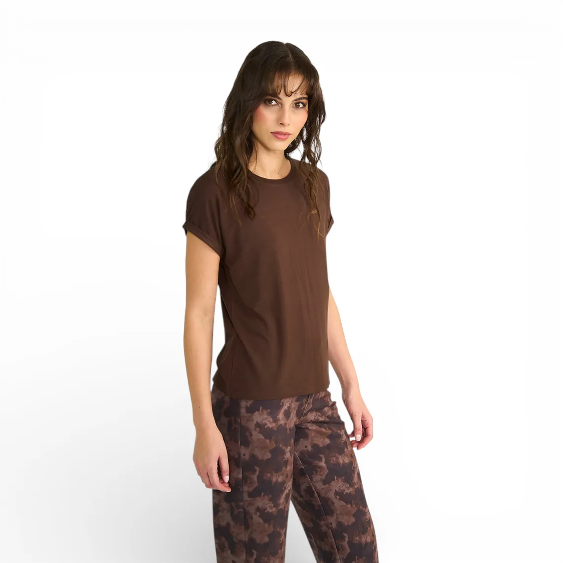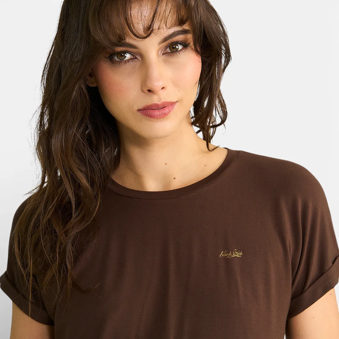 Polera Mujer Timeless Cuello Redondo Logo Frontal Café Ellus