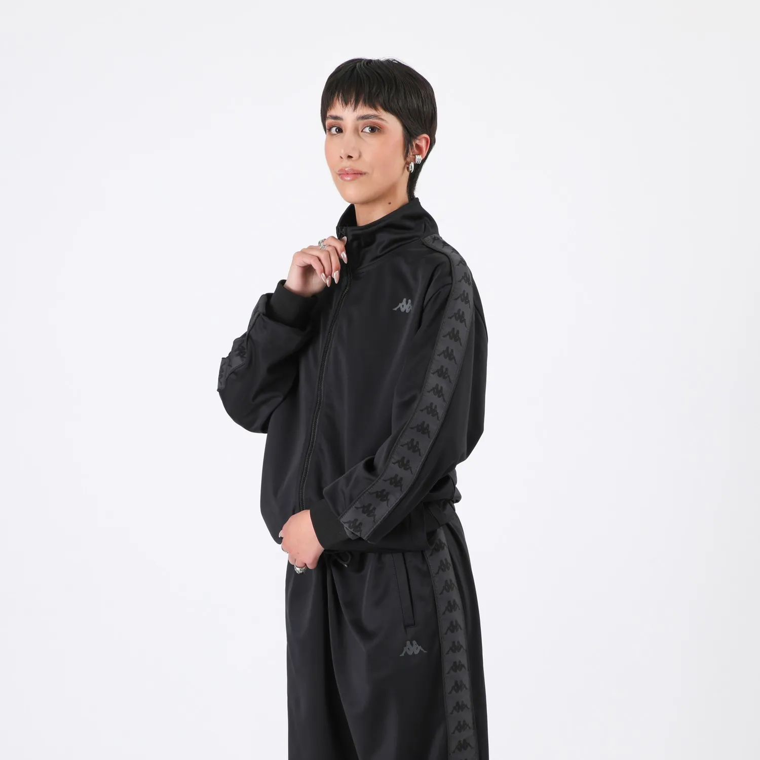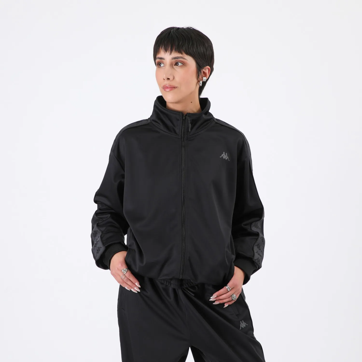 Poleron Full Zipper Black Banda Black Kappa