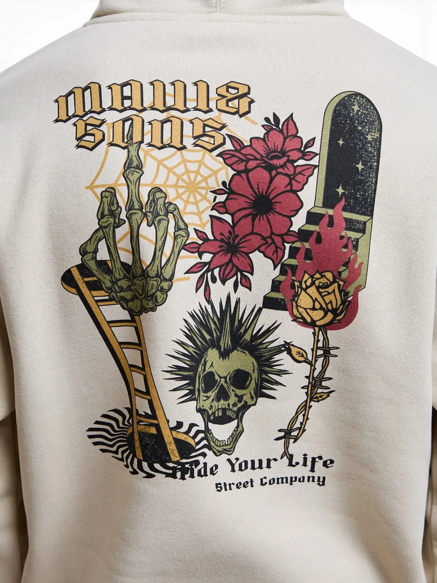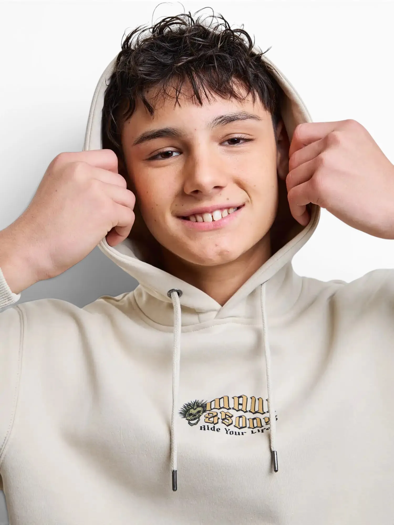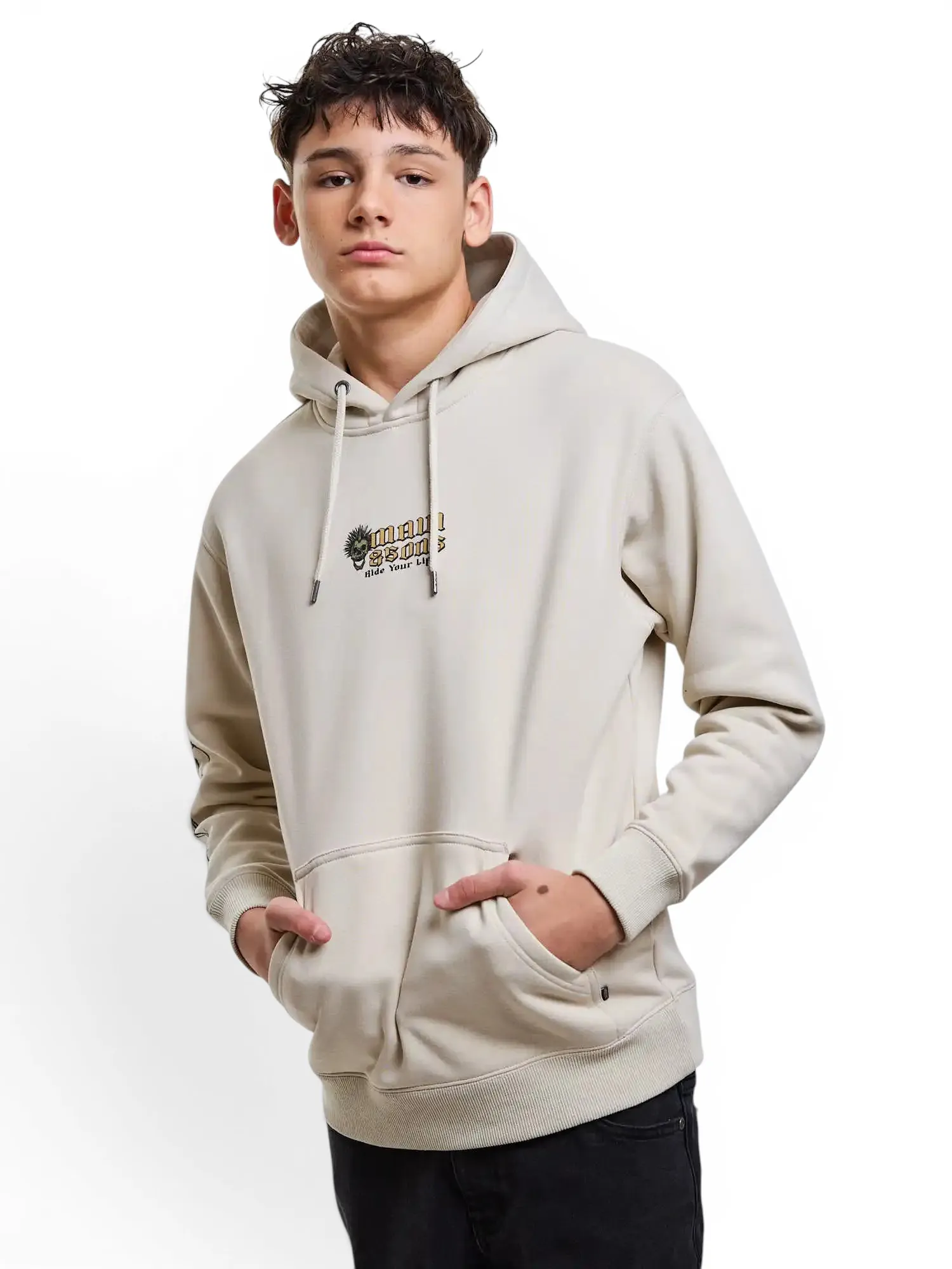 Poleron Juvenil Canguro Skull Ride Beige Maui