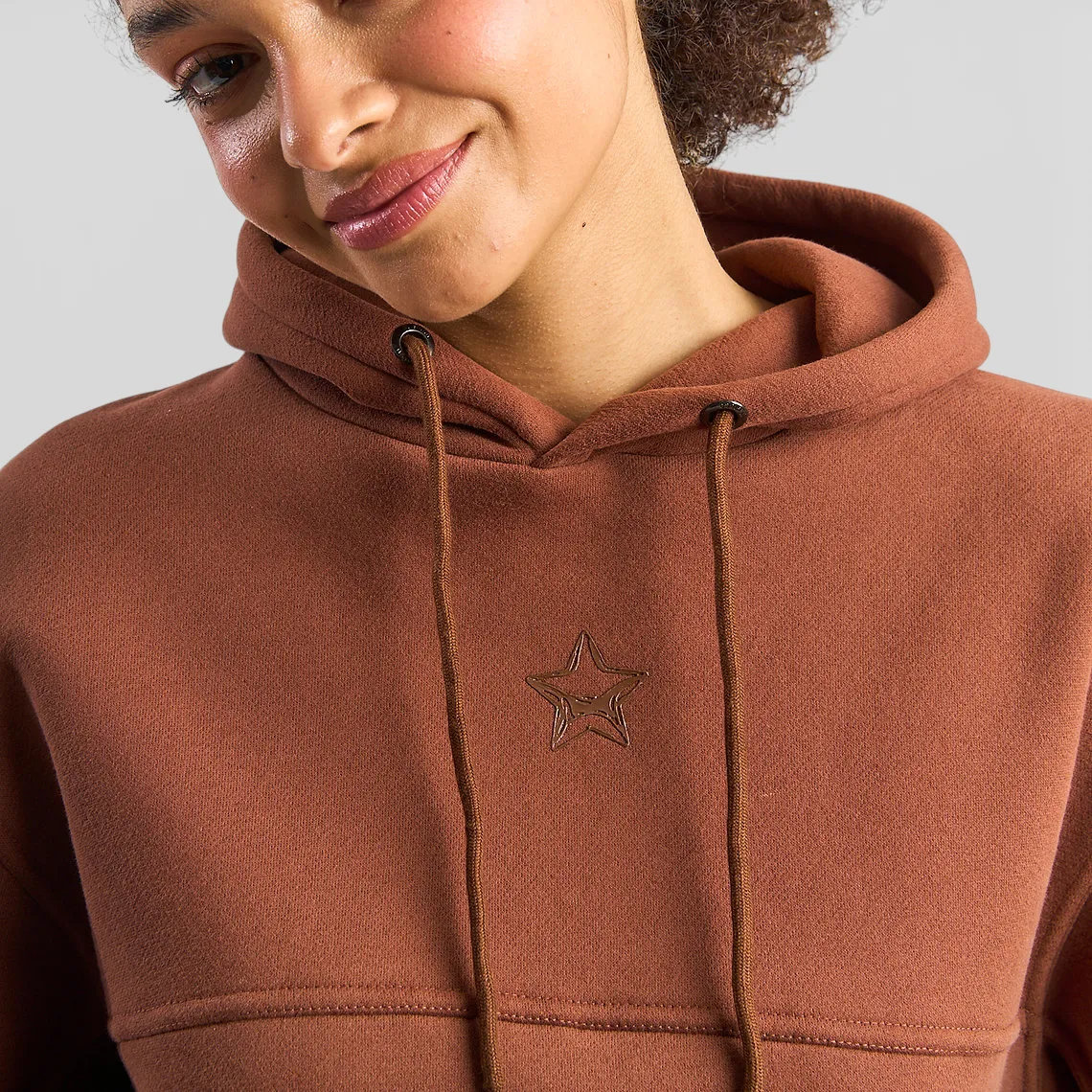 Incorpora capucha ajustable y un print frontal sutil, que aporta identidad sin sobrecargar el diseño. El color café le da un carácter versátil y fácil de combinar con jeans, pantalones cargo o joggers.