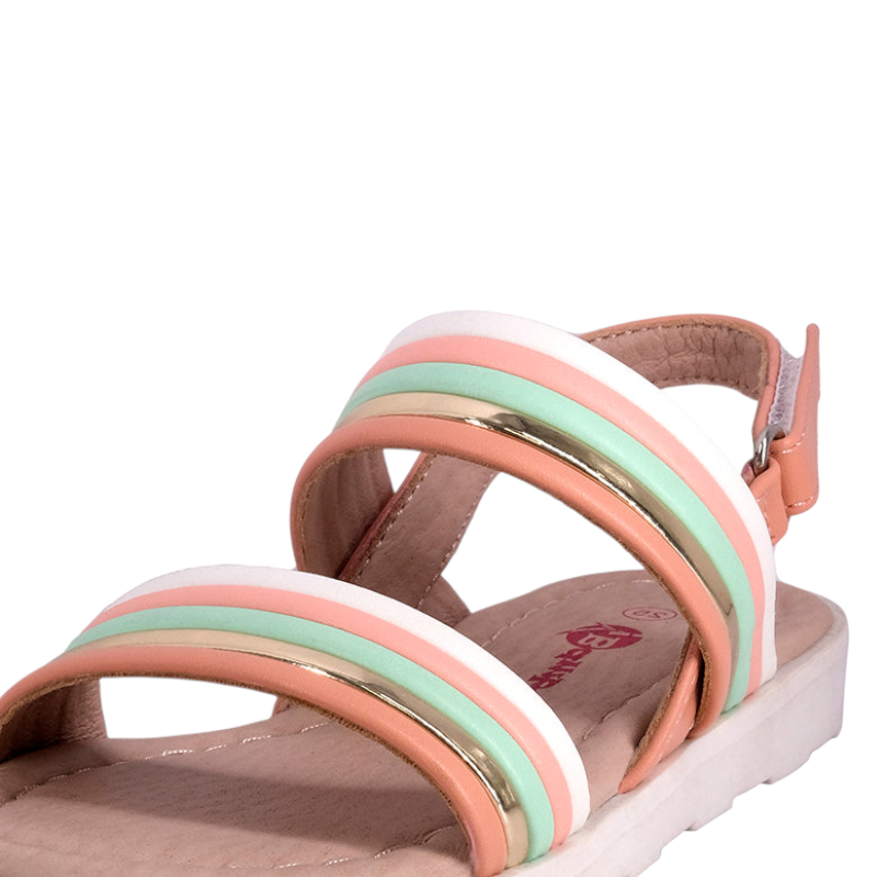 La Sandalia Arcoíris Rosado de Bamboo combina diversión, color y comodidad para las más pequeñas. Su diseño con tiras en tonos pastel crea un look alegre y moderno, perfecto para los días de verano.
