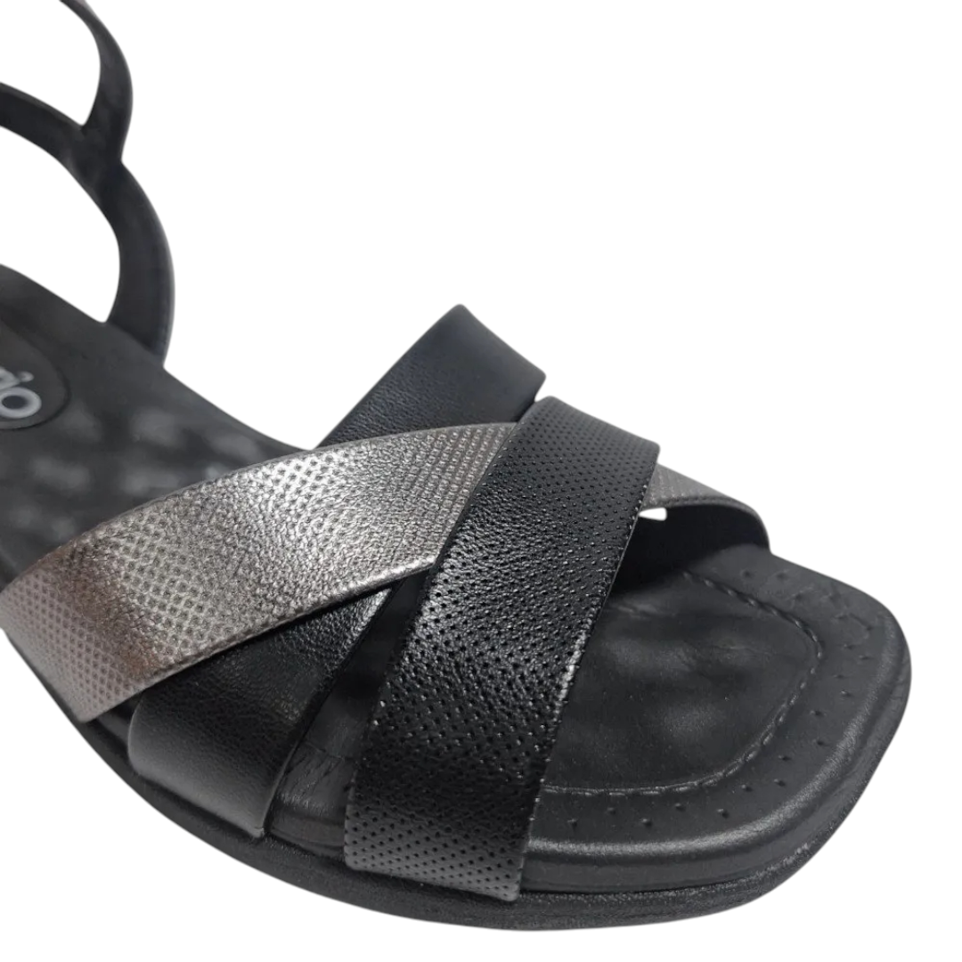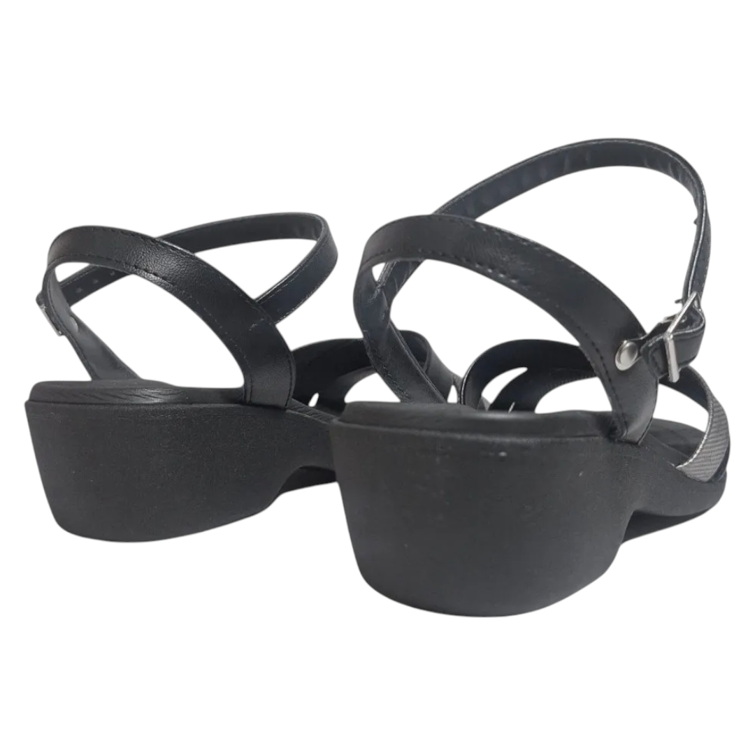 La Sandalia Britta Gales Negro de Beira Rio combina elegancia y confort en un diseño versátil ideal para toda ocasión. Su capellada de napa sintética con acabado grafito ofrece un toque moderno y sofisticado, mientras las correas cruzadas y hebilla ajustable brindan un calce firme y cómodo.