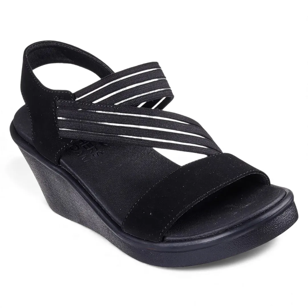 Sandalia Skechers para mujer modelo Rumble On My Go To BBK. Destaca por su diseño moderno con plataforma wedge liviana y capellada de tiras elásticas cruzadas que se adaptan al pie con suavidad. Su plantilla acolchada brinda comodidad en cada paso, ideal para caminatas y actividades diarias. La suela es flexible y estable, perfecta para uso prolongado. Un modelo versátil para combinar con looks casuales y urbanos.