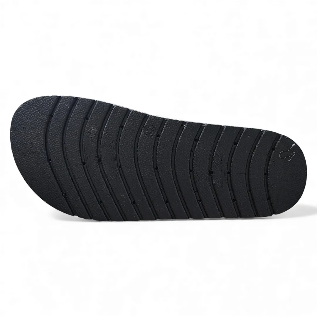 La plataforma con terminación tipo yute entrega un toque natural y actual, mientras que la planta acolchada ofrece comodidad durante todo el día. Es una sandalia versátil, liviana y perfecta para uso diario gracias a su estabilidad y calce seguro.