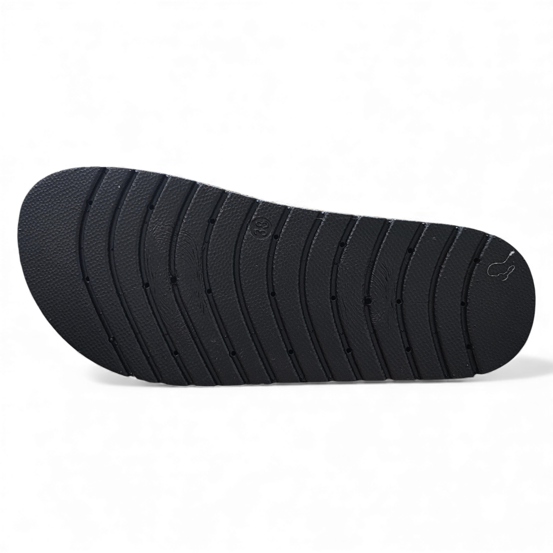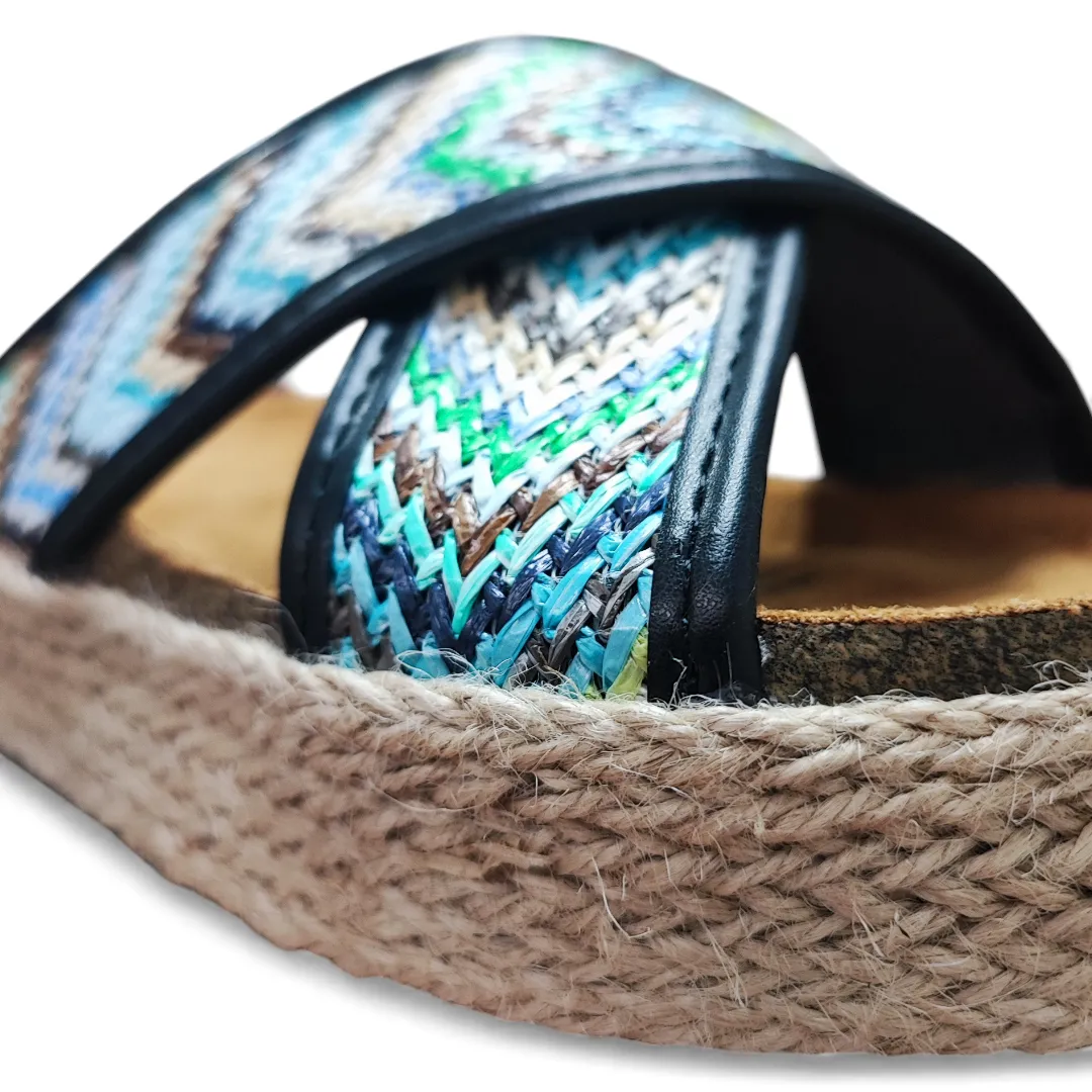 La Sandalia Mujer Riviera Bonny Franco combina un diseño moderno con detalles artesanales que destacan en cualquier look casual. Su capellada sintética en tono Negro incorpora un patrón textil multicolor que aporta un estilo fresco y veraniego, ideal para acompañar outfits relajados.